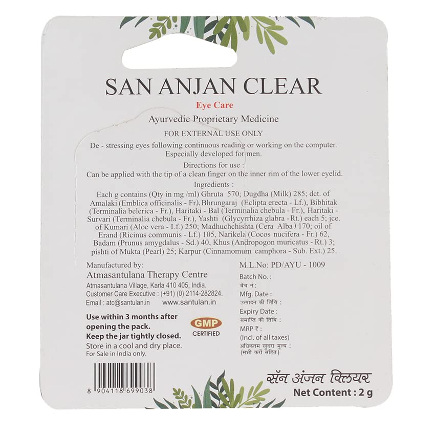 Santulan Ayurveda San Anjan Clear-2GM Each (Pack Of 1) For Eyes Care and get Golden Oldie HerbsSukanthi Pills-1gm