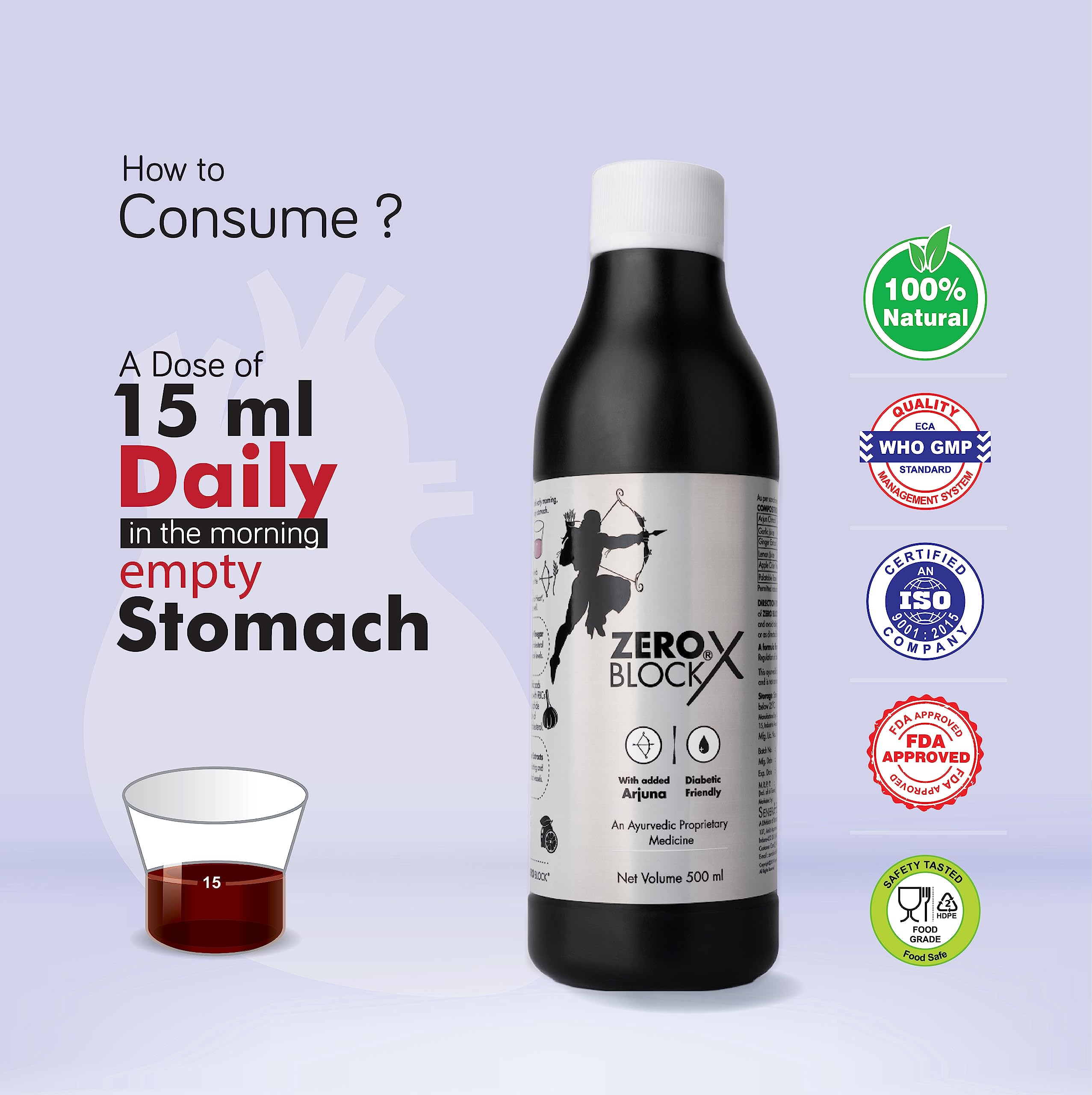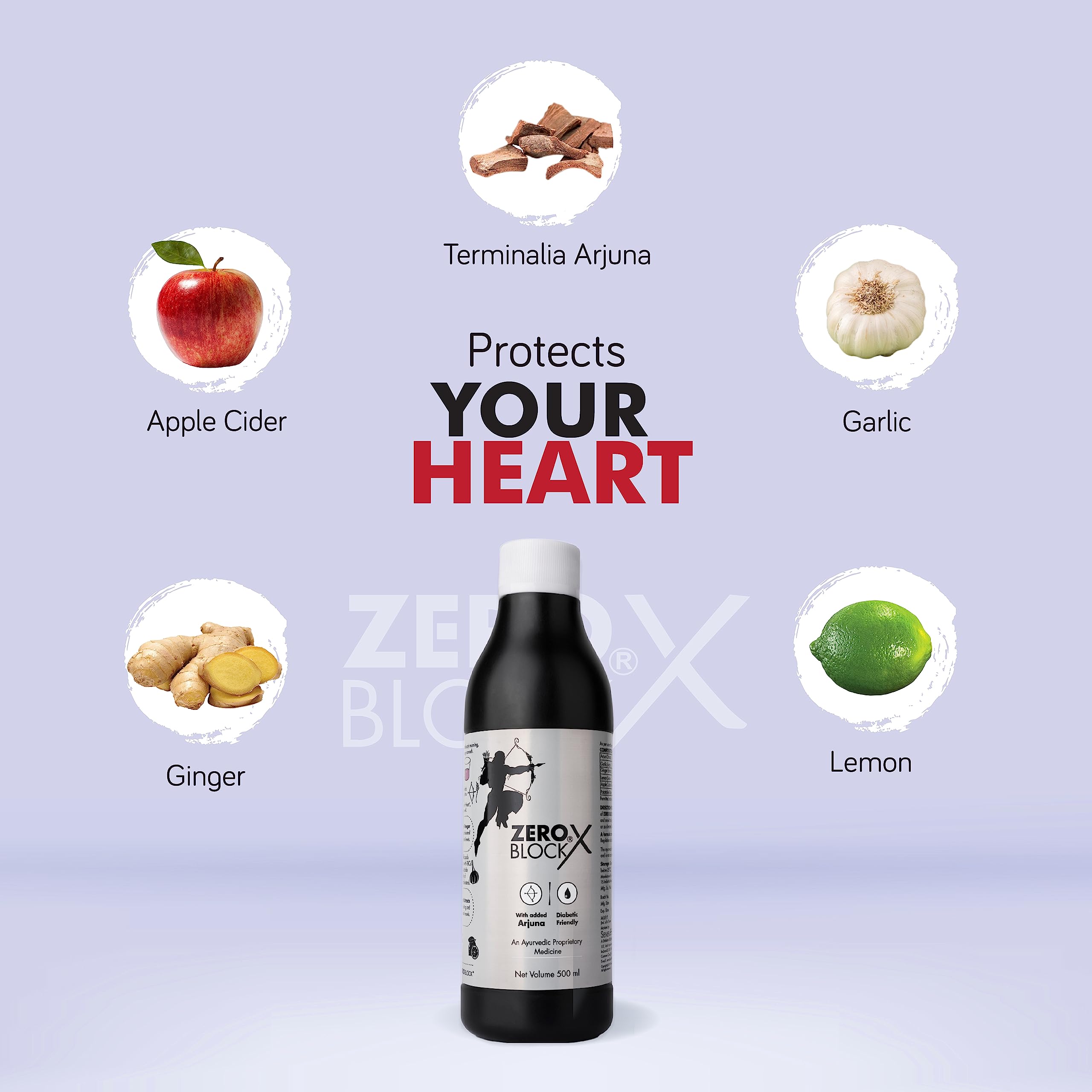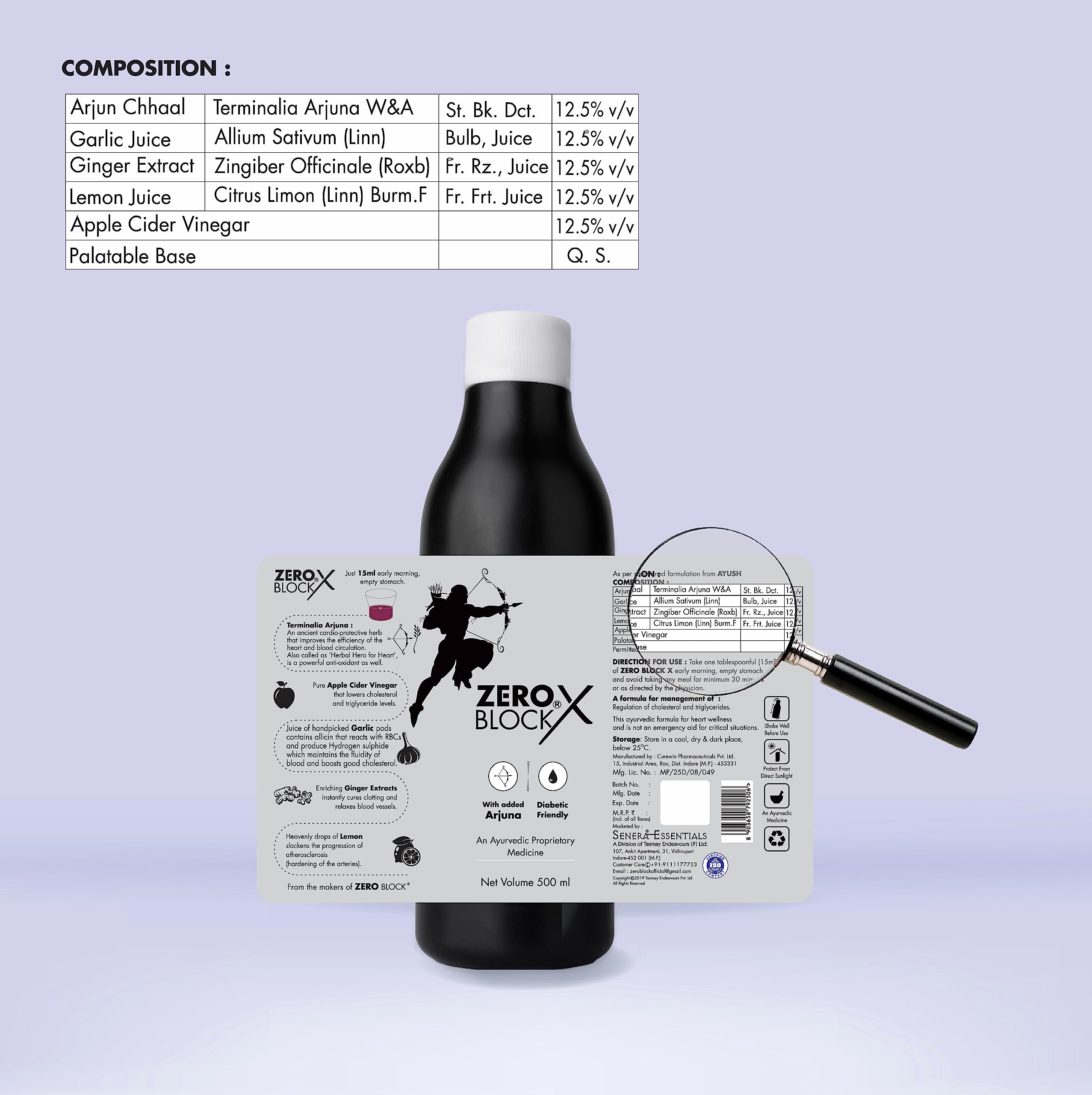 Senera Essentials ZERO BLOCK X (500 ml) - A diabetic-friendly Ayurvedic mixture for Heart Wellness (Arjuna Apple Cider Ginger Garlic and Lemon)