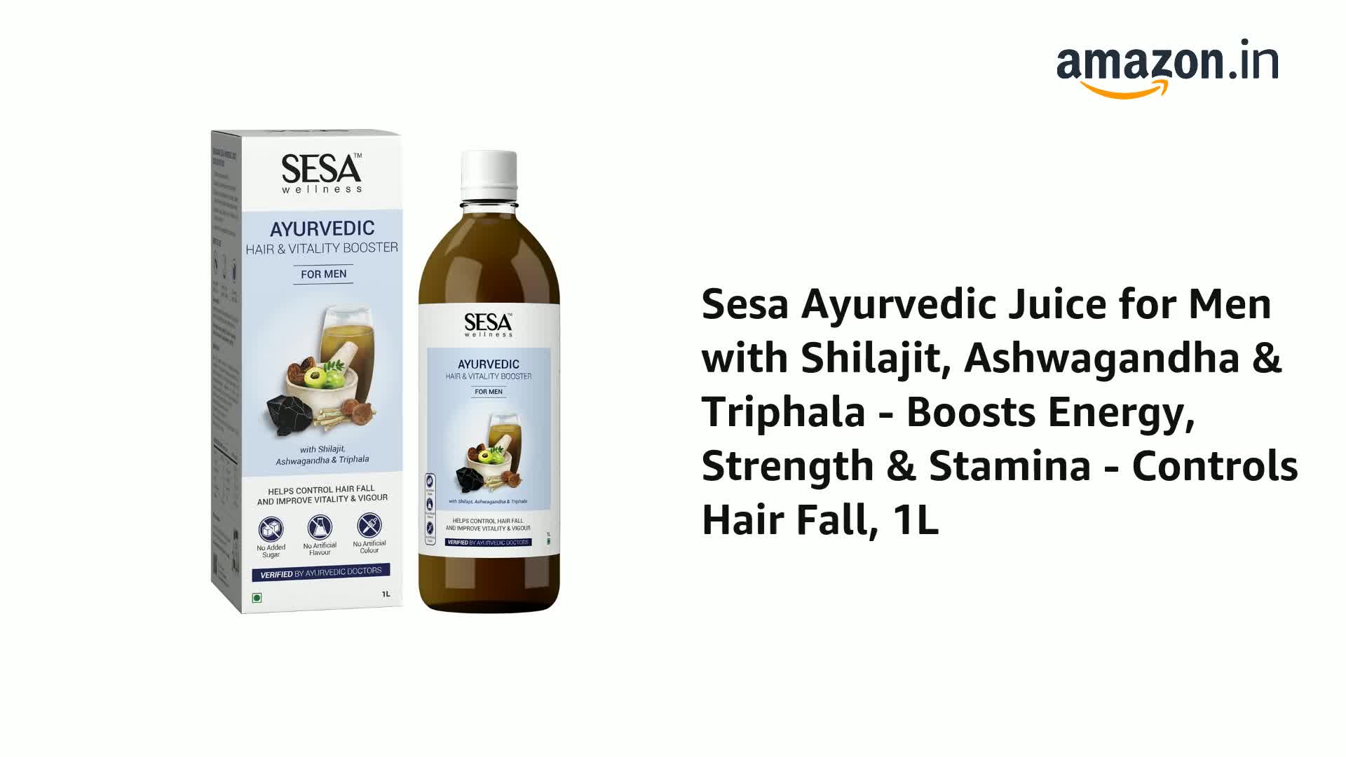 SESA Ayurvedic Juice for Men with Shilajit, Ashwagandha & Triphala - Boosts Energy, Strength & Stamina - Controls Hair Fall, 1L
