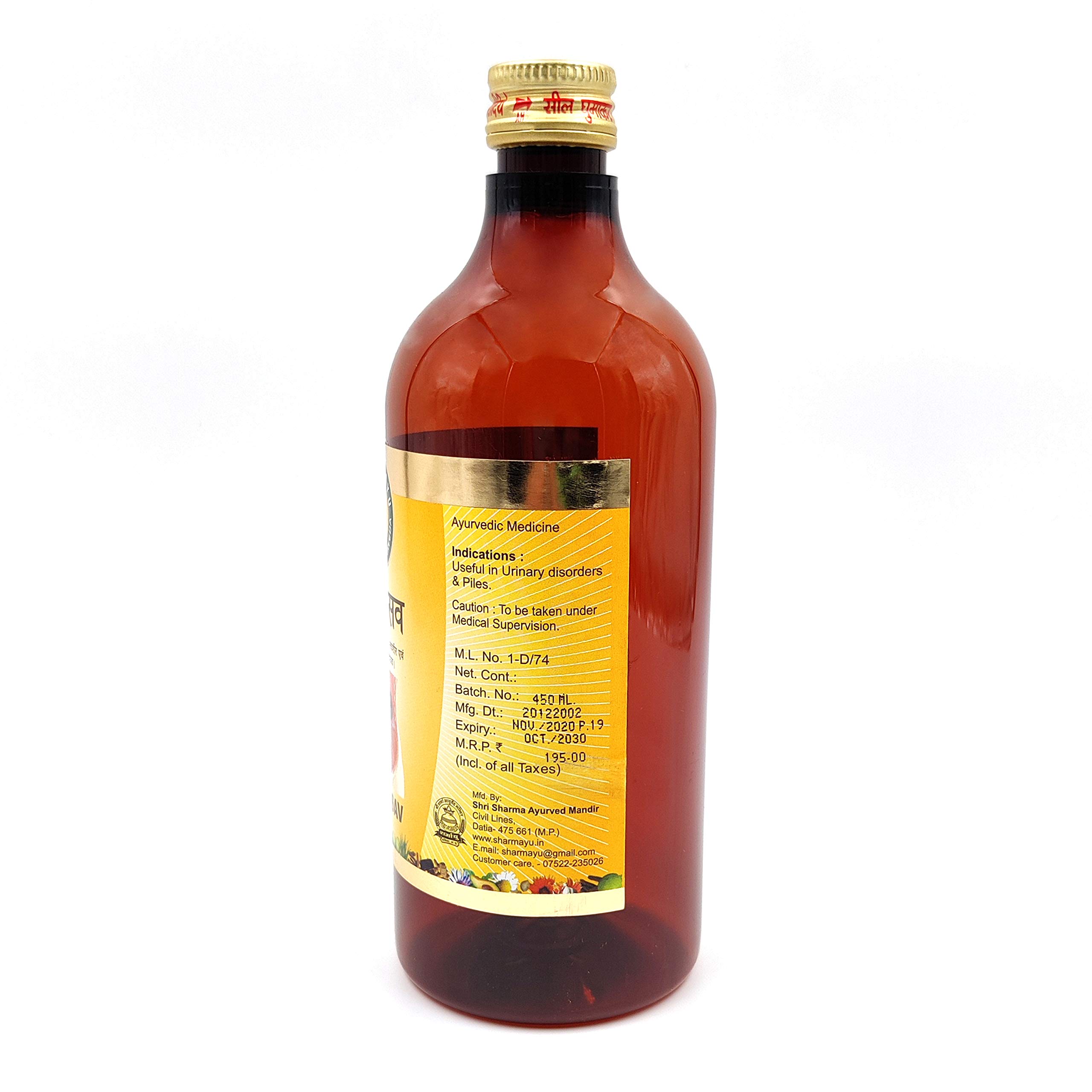 Useful in urinary disorders & Piles. Dose: 15-30 ml. twice daily with water after meor as directed by the physician.