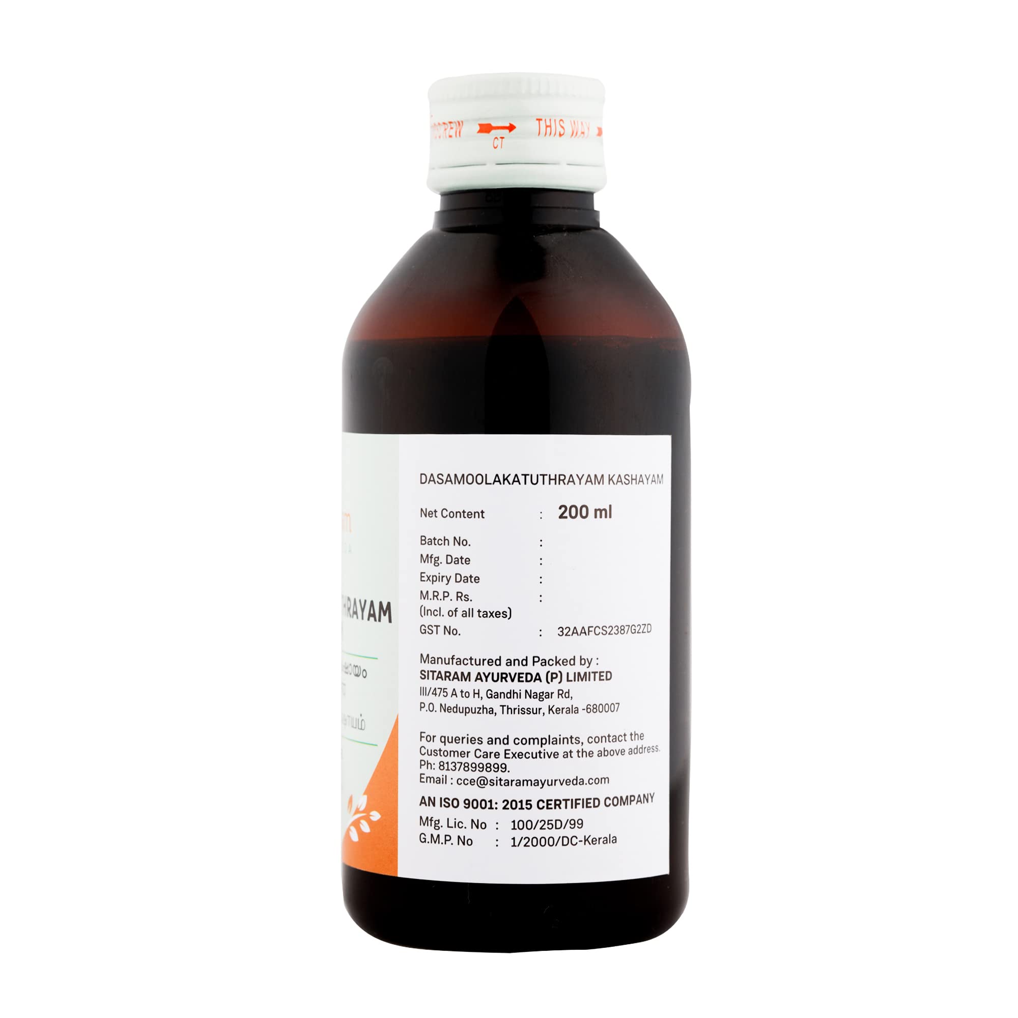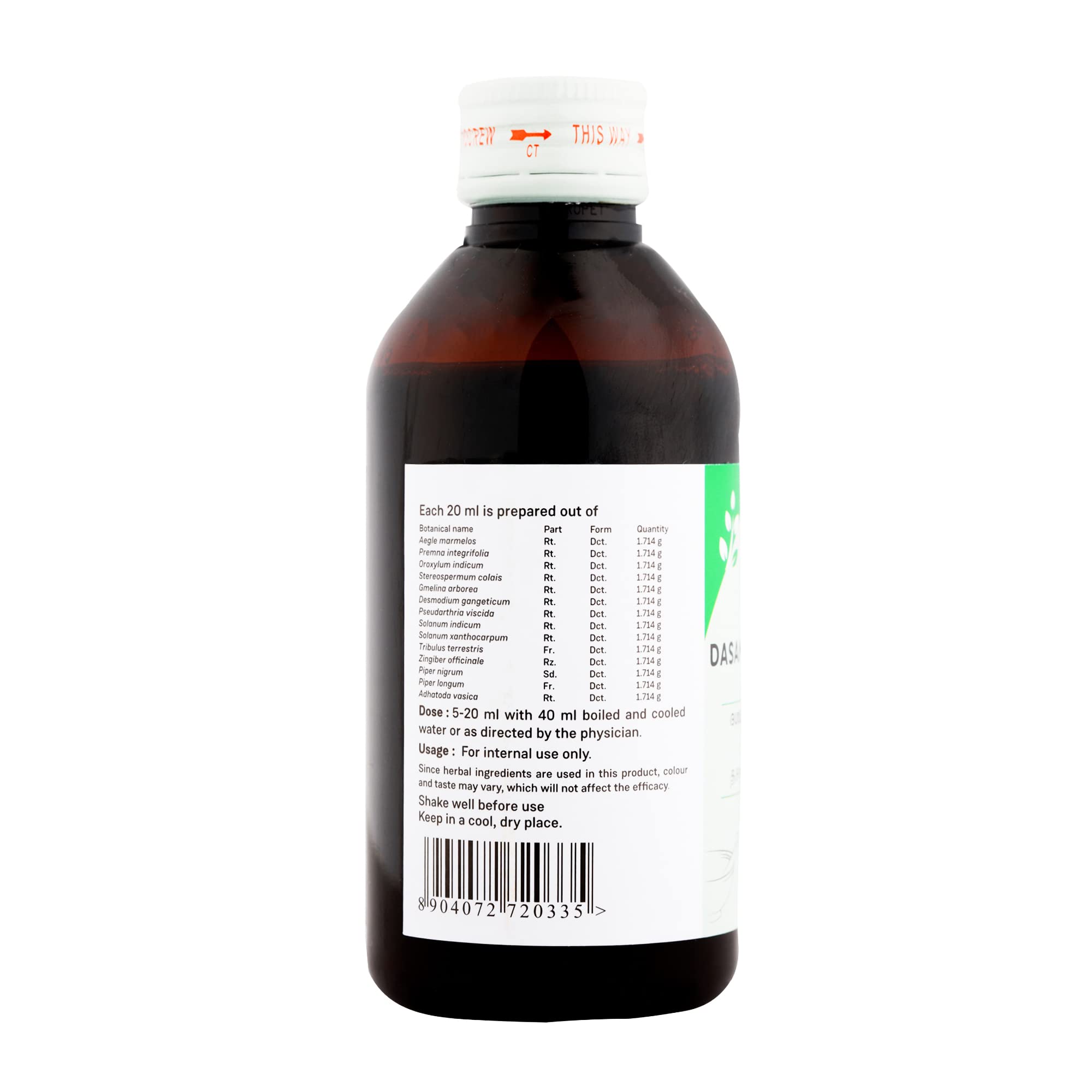 Udana vayu the element of vata that ensures smooth function along with Avalambaka kapha resides in the Uras or chest. Kapha when distorted results in excessive production of phlegm in the lungs and throat. This in turn causes congestion and breathing difficulties. Dasamoola the group of 10 anti-roots along with Trikatu the trio of pungent come together with Vasa (Adathoda vasica) a natural expectorant in Dashamoola Katuthrayam Kashayam.