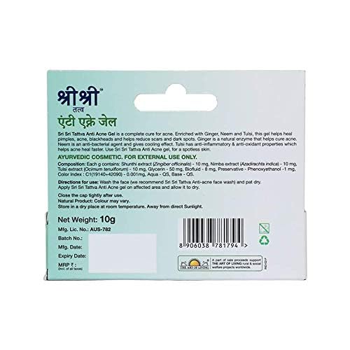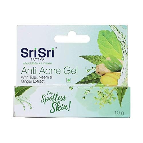Sri Sri Tattva Anti Acne Gel is a complete cure for acne. Enriched with ginger neem and tulsi this gel helps heal pimples acne blackheads and helps reduce scars and dark spots. Ginger is a natural enzyme that helps cure acne. Neem is an anti bacterial agent and gives cooling effect. Tulsi has anti inflammatory and anti oxidant properties which helps acne heal faster.