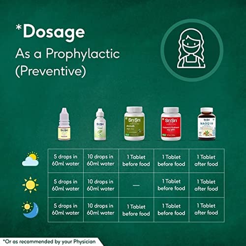 A perfect kit to build enhance & strengthen immunity with a combination of Ayurvedic proprietary medicine and immunity boosters. The kit aids in respiratory disorders and helps to rejuvenate the system.NAOQ19: Sri Sri Tattva brings you additional support to help build your immune system! Introducing NAOQ19 (NF2) which is a carefully formulated and clinically tested product.A blend of 19 Powerful ingredients it works as an effective prophylactic against chronic infections.SN- Product- Qty MRP1 Shakti Drops 10ml 1 MRP 1102 Tulasi Arka 30ml 1 MRP 803 Amruth 60 Tabs | 500mg 1 MRP 1304 Kabasura Kudineer 60 Tabs | 500mg 1 MRP 1305 NAOQ19 60 Tabs | 500mg 1 MRP 250Total MRP 700 Recommended use: Use with the standard of care recommended by your physician).Net Weight: 500g