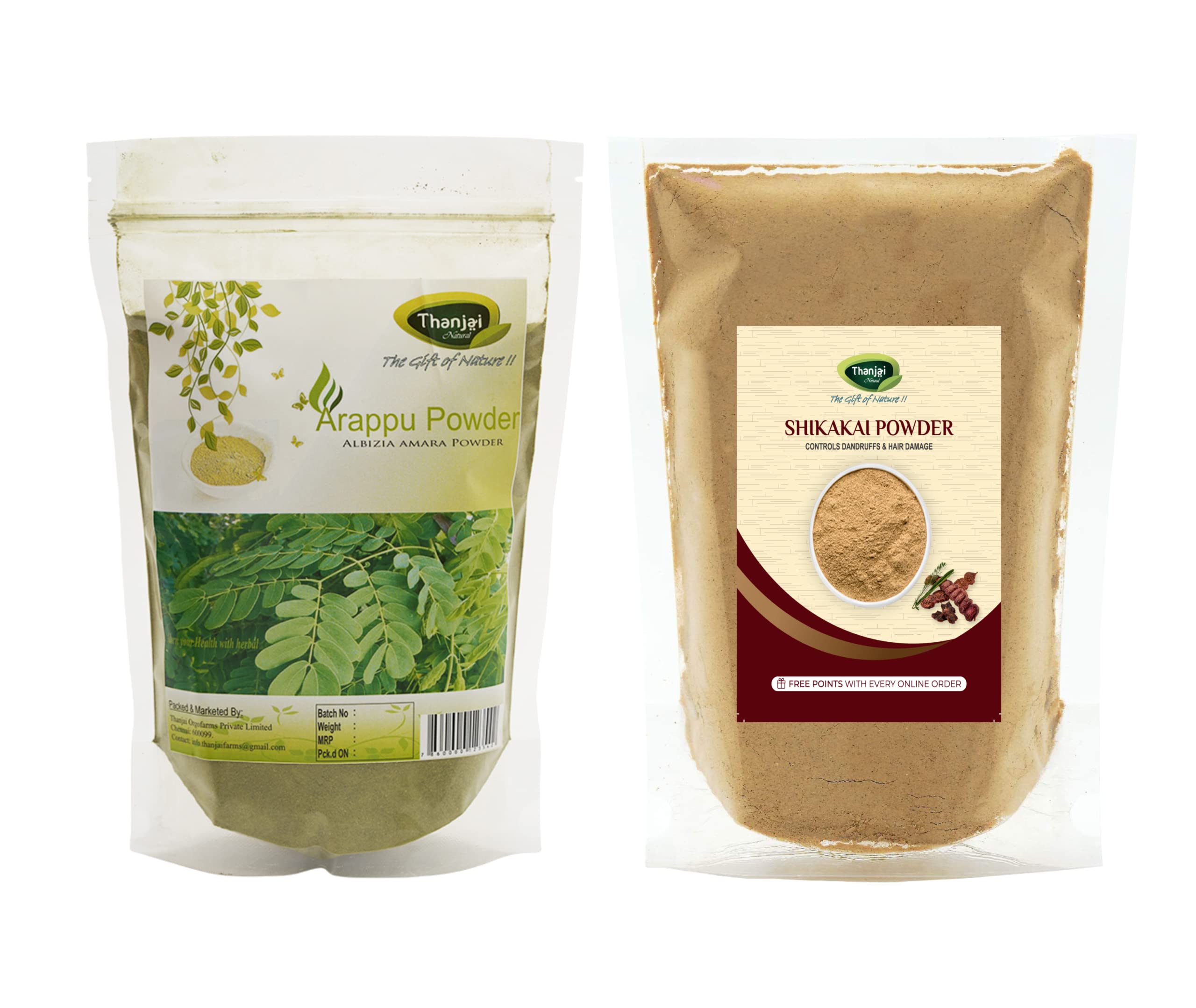 Thanjai Natural 100% Pure Shikakai (Acacia Concinna) Powder + Arappu (Albizia Almara) Powder For Hair Pack for Damaged & Weak Hair | Excellent Hair Conditioner & Cleanser (Each 500g)