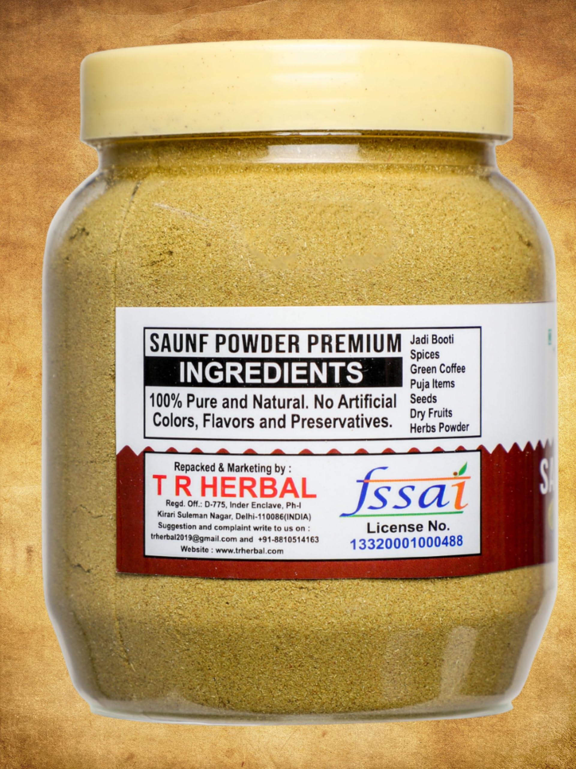 Powder of the seeds of fennel plant. The seeds are broiled without any oil and powdered on orders.