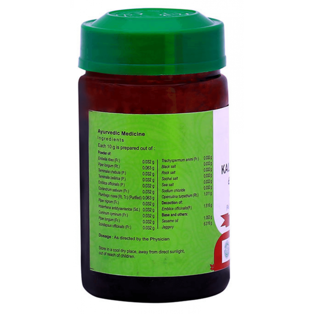 Vaidyaratnam Kalyana Gulam, For Bloating, 100% Herbal: 250 gmVaidyaratnam Kalyana Gulam is an Ayurvedic formulation. This herbal decoction is traditionally used for bloating.Form: PowderType: Herbal supplementIdeal for: Children and adultsGender: Both men and womenPackage content: 250gm in an airtight bottleIngredientsVaidyaratnam Kalyana Gulam is enriched with herbal goodness. It is made withAjwainLeadwortCorianderMyrobalanLong pepperBlack pepperIndian gooseberryFalse black pepperBeleric myrobalanBenefitsVaidyaratnam Kalyana Gulam may be useful in the following health issues.FistulaAscitesAnemiaBloatingJaundiceFatty liverSkin diseasesDigestive issuesFeaturesVaidyaratnam Oushadhasala was founded in 1941. This Ayurvedic institute is a family-owned organization. It follows Kerala Ayurveda and Ashtavaidya tradition to manufacture its products. Vaidyaratnam Kalyana GulamIs 100% herbalIs made with the best quality ingredientsComes with a long shelf life of 3 months from the date of manufactureAfter unsealing the bottle, finish the content within 4-5 months of timeDoseVaidyaratnam Kalyana Gulam should be consumed after consulting an Ayurvedic physician. Generally, the below steps are followed to have the decoction.Take the decoction before or after mealsAdults can have 5-10gm of the powder per dayChildren below 5 years can have 1-2gm of the herbal powder per dayChildren between 5-12 years can have 5gm of the supplement per dayTake the supplement along with honey, milk or warm water for effective resultsTipsVaidyaratnam Kalyana Gulam stays fresh and usable for long if the below tips are followed.Store at a cool and dry placeKeep only in the provided containerWarningKeep away from c