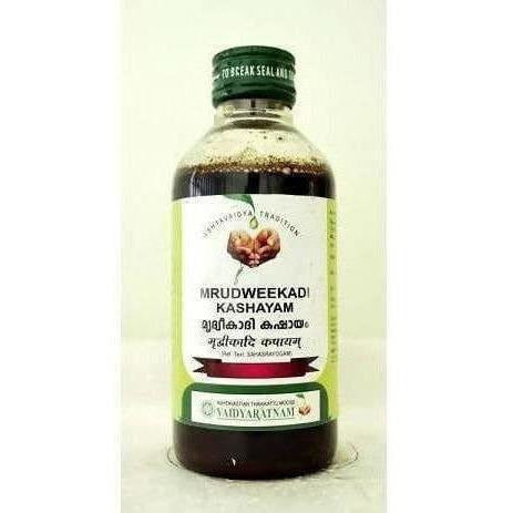Vaidyaratnam Mrudweekadi Kashayam, 100% Herbal, For Mental Disorders, 200mlVaidyaratnam Mrudweekadi Kashayam is an Ayurvedic tonic. This herbal decoction may be useful in mental disorders, like mania.Form: LiquidType: Herbal supplementIdeal for: Children and adultsGender: Both men and womenPackage content: 200ml in an airtight bottleIngredientsVaidyaratnam Mrudweekadi Kashayam is an all-natural decoction. It is made withUshira- VetiverLaja- Asian riceMusta- NutgrassDraksha- GrapesMadhuka- HoneyKhajura- Date palmPippali- Long pepperChandana- SandalwoodSariva- Indian sarsaparillaYashtimadhu- Licorice rootBenefitsVaidyaratnam Mrudweekadi Kashayam may be useful in the following health issues.ThirstManiaFaintingFeaturesVaidyaratnam Oushadhasala was founded in 1941. The institute is established at Ollur, Kerala. Vaidyaratnam follows traditional Ashtavaidya Tradition and Kerala Ayurveda to manufacture its products. Vaidyaratnam Mrudweekadi KashayamIs easy to useIs 100% herbalIs made with the best quality ingredientsIs not known to have negative effects on the userComes with a long shelf life of 12 months from the date of manufactureDoseVaidyaratnam Mrudweekadi Kashayam should be consumed after consulting an Ayurvedic physician. Generally, the below steps are followed to have the decoction.Have the tonic twice a dayTake the potent before mealsHave 15ml of the tonic per dayMix with an equal amount of lukewarm water before consumptionTipsVaidyaratnam Mrudweekadi Kashayam stays fresh and usable for long if the below tips are followed.Shake well before useStore at a cool and dry placeWarningKeep away from childrenDo not expose to direct sunlightDo not exceed the recommended d