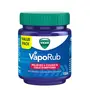 Vicks VapoRub contains Menthol and Eucalyptus Oil known for their therapeutic benefits in and . It provides effective multi-symptom from 6 symptoms- Blocked nose Breathing difficulty Body Ache Headache & Muscular stiffness Directions: Apply on chest throat and back for from 6 symptoms: Breathing difficulty body ache blocked nose headache and muscular stiffness. Start feeling in 5 minutes from blocked nose and breathing difficulty. Steam Inhalation: 1-2 teaspoons to bowl of hot water (not boiling). Cover head with towel. Lean over bowl to form tent. Gently inhale for 10-15 mins. Repeat up to 3 times per day. Ingredients: Content/100g: Pudinah Ke phool 2.82g Karpoor 5.25g Ajowan Ke Phool 0.10g TarKa Tel 5.57ml Nilgiri Tel 1.49ml Jatiphal Tel 0.54ml Base q.s. Caution: ¢Use as directed. For external use only. ¢Don't take by mouth or place in nostrils. Keep out of reach of . ¢Consult a doctor if illness persists for over a week or if used by less than 2 years or if /breastfeeding. Don't use on broken / damaged / bandaged skin. ¢For Steam Inhalation Don't Vaporub into boiling water. Don't heat or reheat (using stove /microwave) Vaporub together with water. Steam inhalation is suitable for use on adults and more than 6 years. Closely supervise to avoid scalding. Use care when using with hot water.