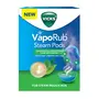 Vicks VapoRub SteamPods gives quick relief from blocked nose sinus congestion headache and cough due to cold. How to use: For steam inhalation in adults and children 6 years and above: 1.Put 1 Steam Pod into a bowl of hot (not boiling) water. 2.Cover head with towel. 3.Gently inhale for 10-15 minutes. 4.Repeat up to 3 times per day.
