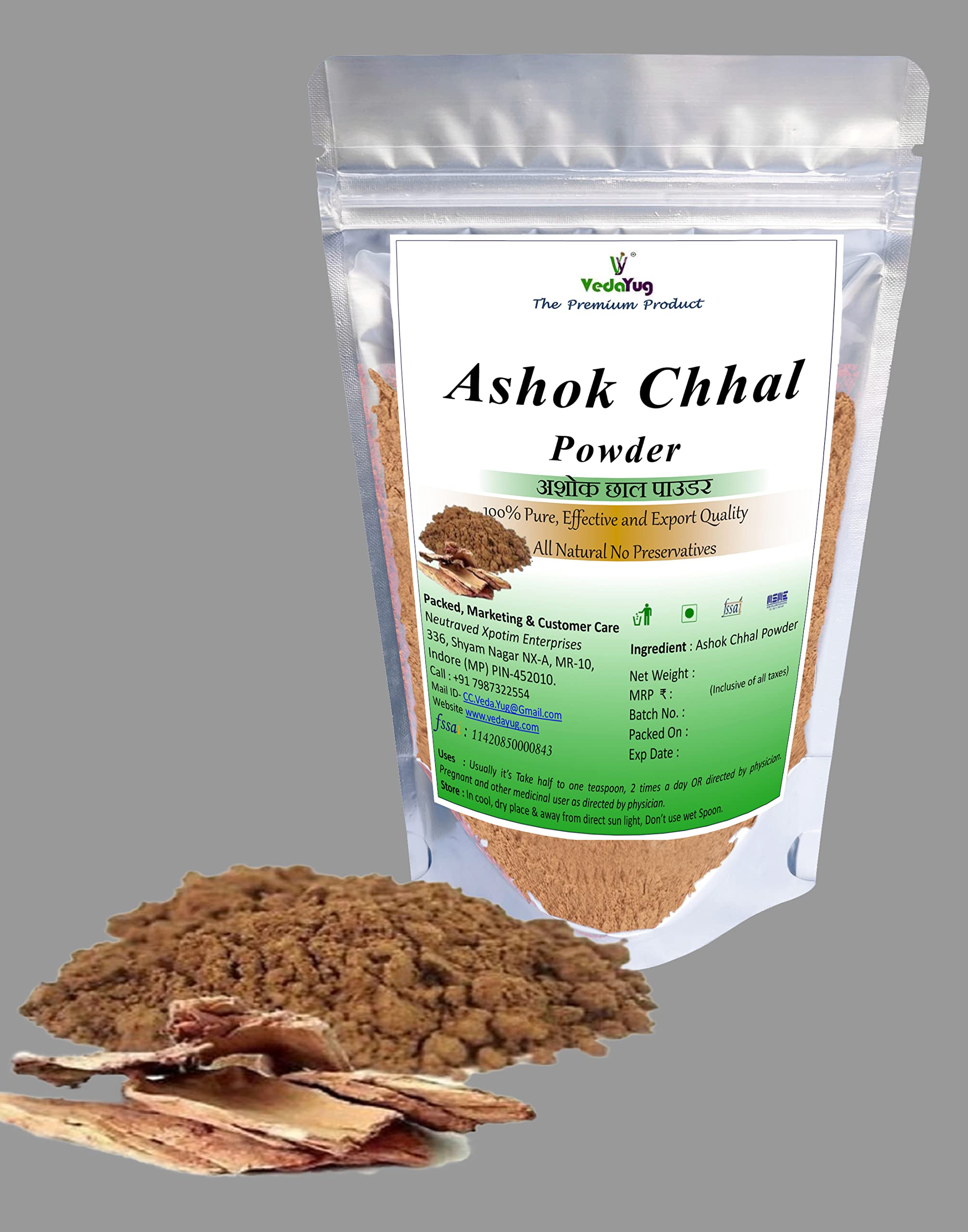 VY VedaYug Ashoka Bark Powder 100g | Ashoka Chaal (Saraca Indica) Asoca Chhal Powder Pure and Organically Processed Fine Powder | Food-Grade Stand-Up Zipper Pouch - 100g