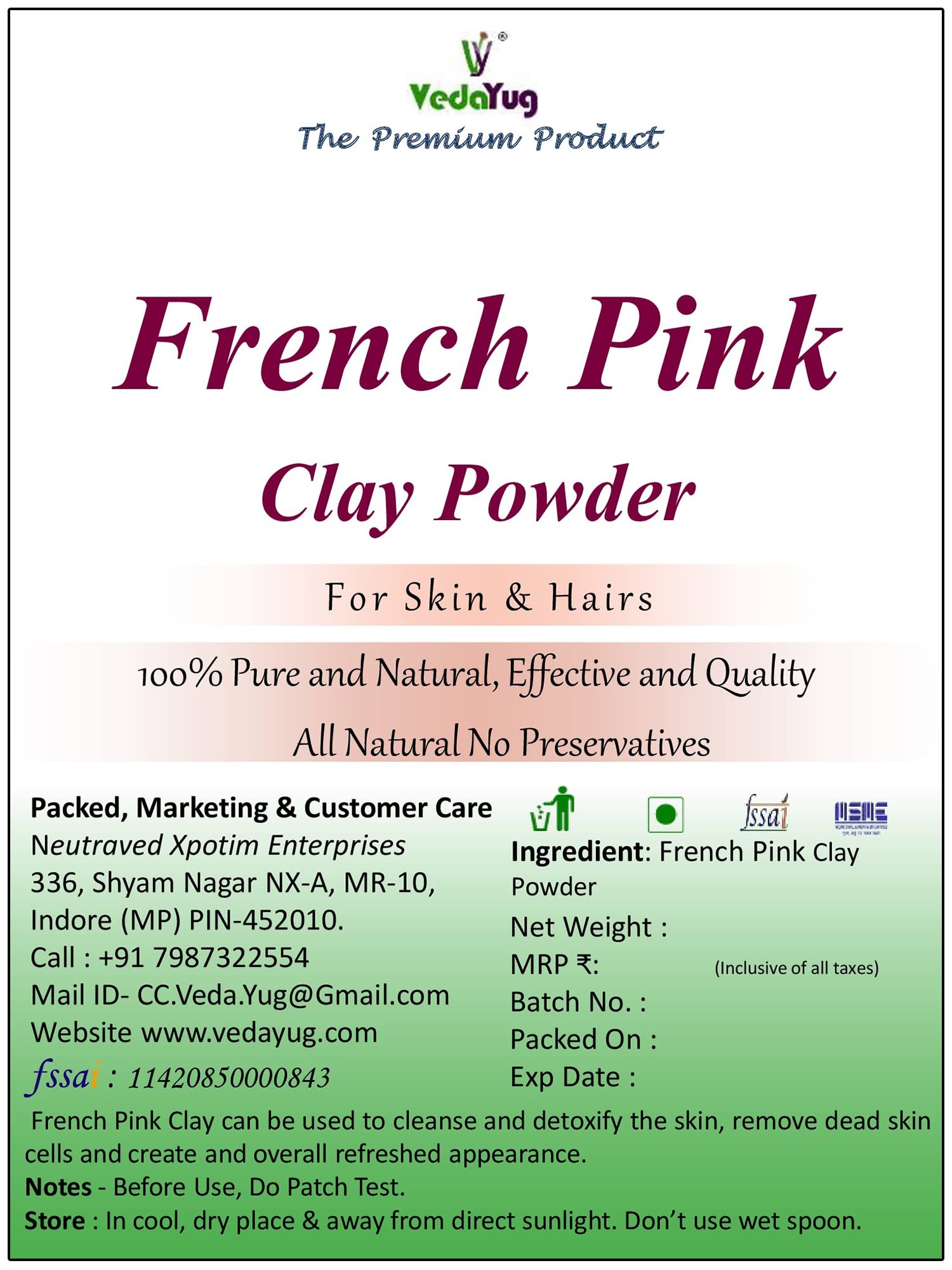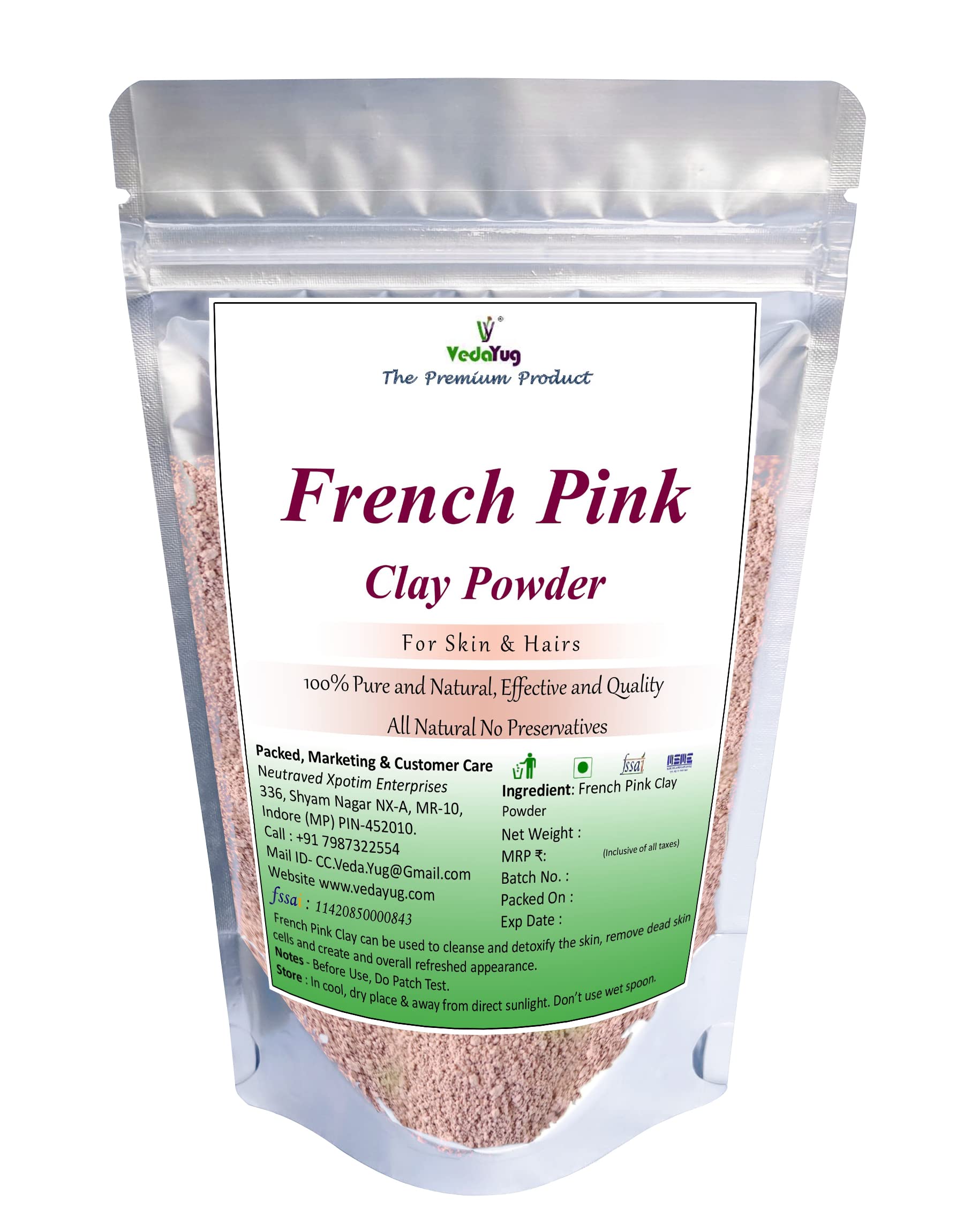 VY VedaYug French Pink Clay powder 100g| Montmorillonite Pink-Clay | French Rose Clay | Face mask | 100% natural powder - 100g