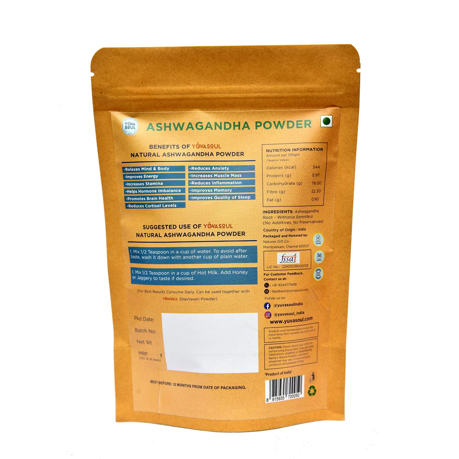 YUVA SOUL Natural Ashwagandha Powder for Boosting Immunity Ashwagandha Herbal Powder Ashwagandham (Withania Somnifera) - 60 Grams