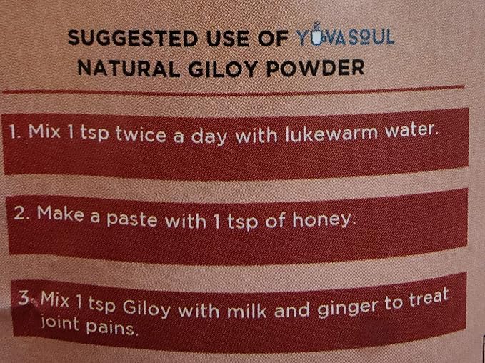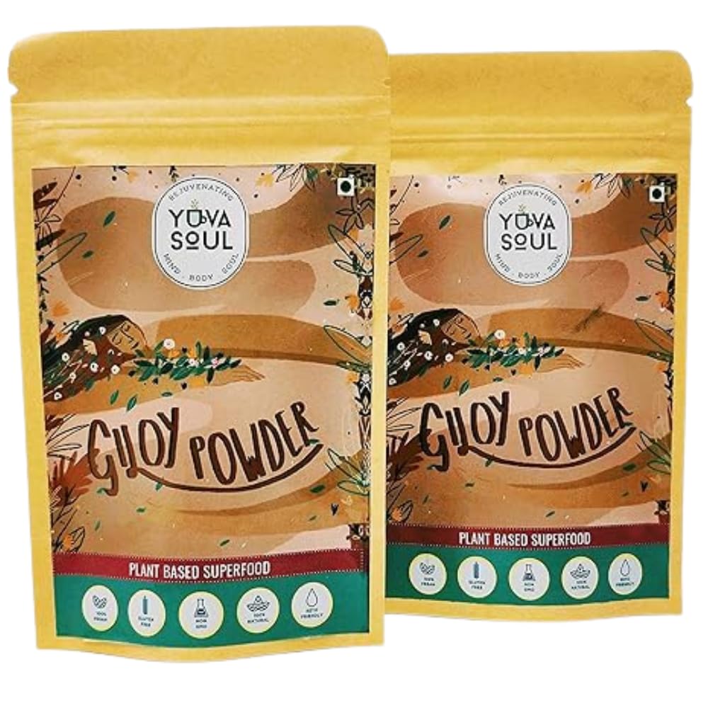 YuvaSoul Guduchi powder. Guduchi is also called as Giloy and is botanically known as Tinospora cordifolia powder. Guduchi for immunity wellness contains the most natural and effective formulation of trusted natural ingredients.Guduchi powder is made from the stem of Tinospora cordifolia. It has anti-spasmodic anti-microbial anti-osteoporotic anti-inflammatory anti-arthritic immuno-modulatory anti-allergic and anti-diabetic properties.
