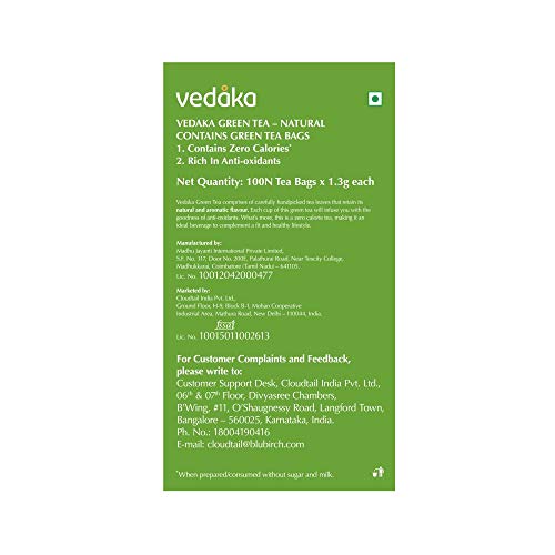 Vedaka green tea is made from hand-picked high quality tea leaves. The fine tea blend provides a fresh taste and enticing aroma for a healthy start to your day. It is a rich source of natural antioxidants and contains zero calories when consumed without milk or sugar. Vedaka green tea helps keep your body hydrated and complements an active lifestyle. Experience the joy of brewing yourself a healthy natural and refreshing cup of tea which indulges your taste buds and senses. A perfect harmony of flavours with freshness to relax and rejuvenate your day. The pack contains 25 or 100 tea bags to give you tasteful cups of green tea.