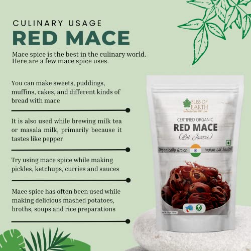 Bliss of Earth Red Mace commonly known as javitri in indian is extracted from the seeds of nutmeg plant. its crimson red in color and appears like a thick red thread. It has a powerful aroma and spicy flavor that tastes like a blend pepper and cinnamon. It is commonly used in south Asian Cuisine and offers multiple health benefits. Adding a small dose of Bliss of Earth Red Mace to your daily diet can help treat a variety of health problems.