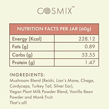 Cosmix No Nonsense Plant Protein + Shroom Immune Coffee Booster Vanilla| Plant Protein- Organic Brown Rice&Pea Isolate|Coffee Booster -ReshiChaga&Sliver Ear|Immunity Boosting&Prevent Caffeine Crash
