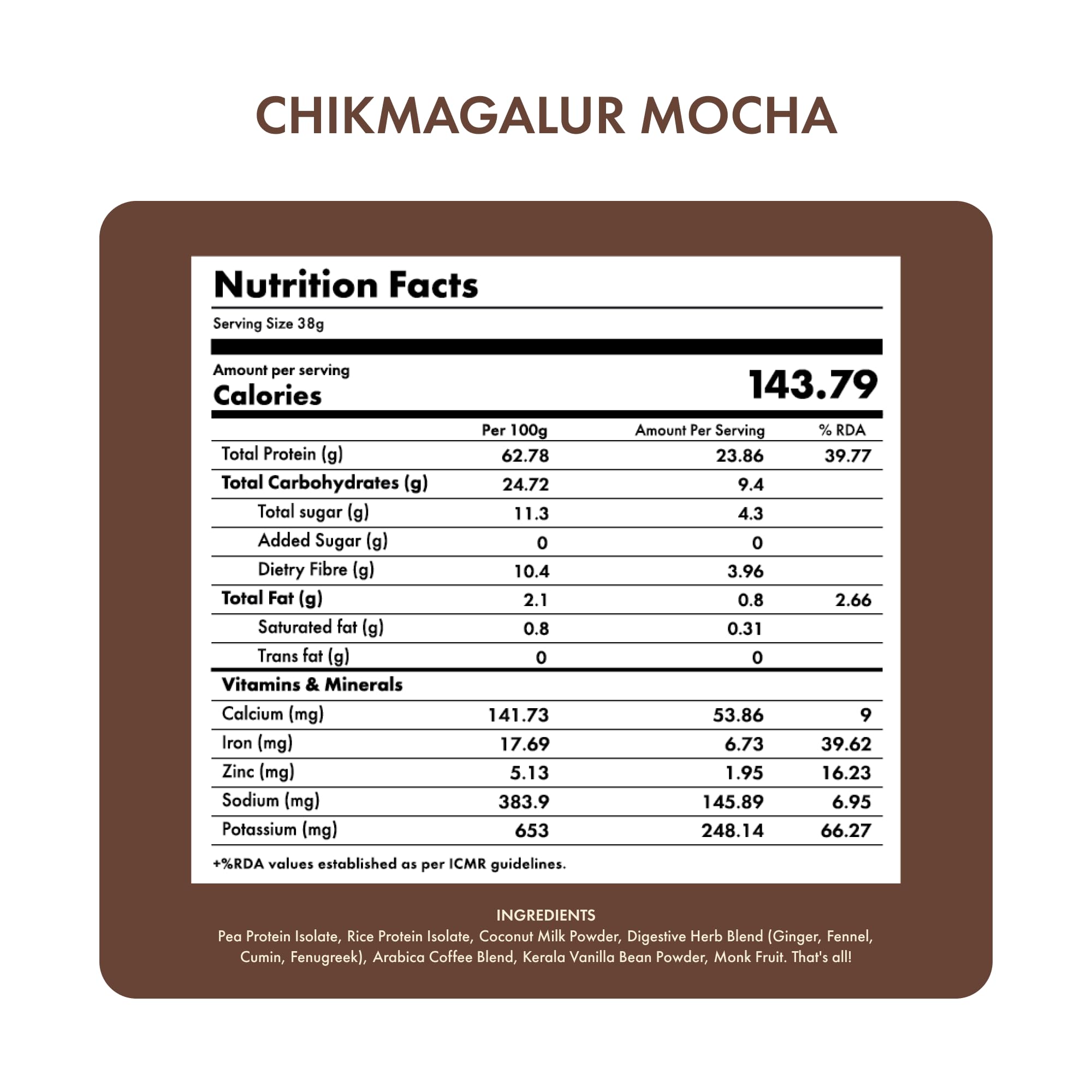 This specific flavour of No Nonsense Plant Protein is called Chikmagalur Mocha. The flavour profile of this protein is an excellent balance of coffee and rich chocolate. This is what makes the flavour so attractive to chocolate or coffee loving customers.