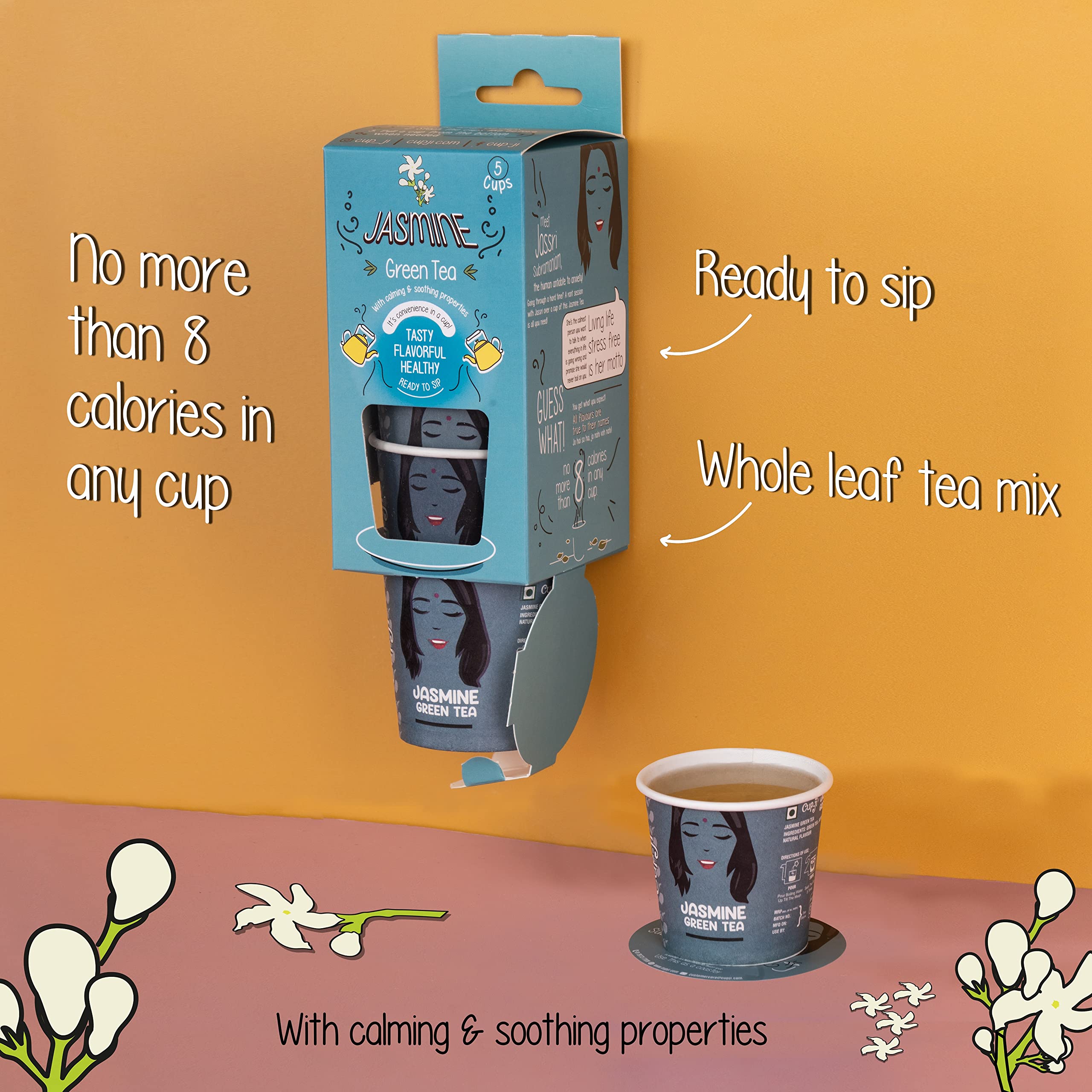 HomeHealth & PersonalDiet & NutritionHerbal Tea & CoffeeCup-Ji Jasmine Green Tea For Stress Reduction I Ready-to-Sip Tea Cups I 5 Cups Dispenser I 2 Packs I Sugar-free I Whole Leaf Teas I All Natural I Non - Bitter Green Tea I Less than 8 Calories.