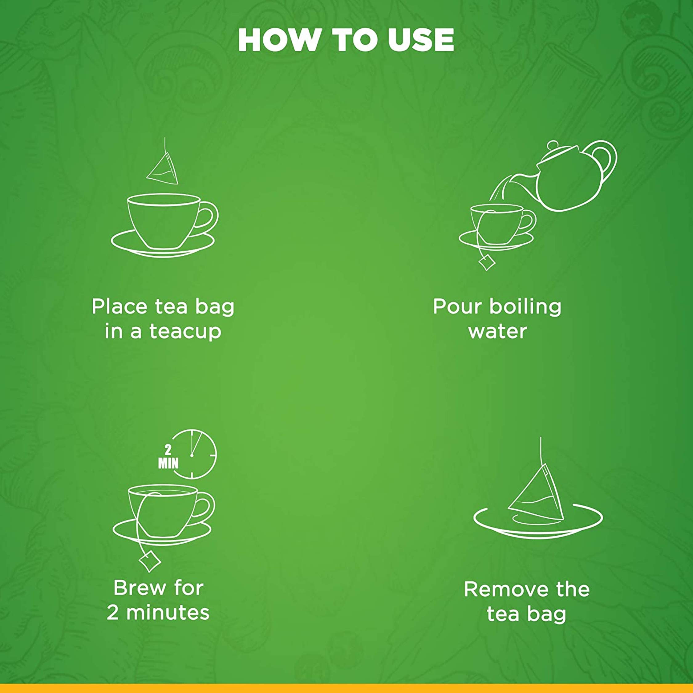 Dig one tea bag in a cup of boiling water (100ml approx) for 2 minutes stir well and drink as tea 2-3 times a day or as directed by the physician.
