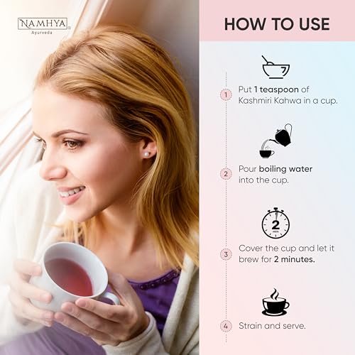 Namhya Kashmiri Kahwa Tea | Kashmiri tea with with Saffron, Cardamom, Cinnamon and Rose Petals 3.53 oz (100 Grams) | Helps to Boosts Immunity, Enhances Digestion | Kahwa kashmiri tea