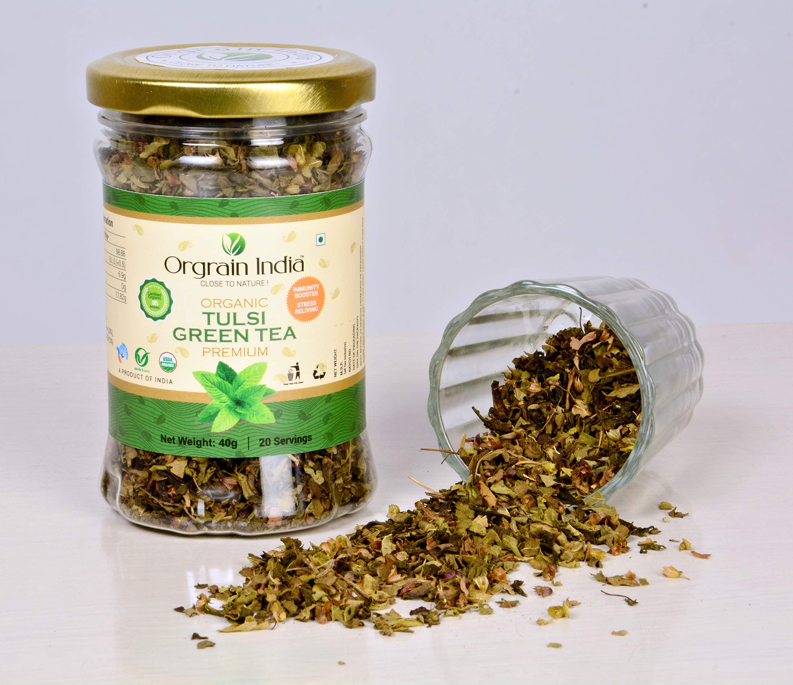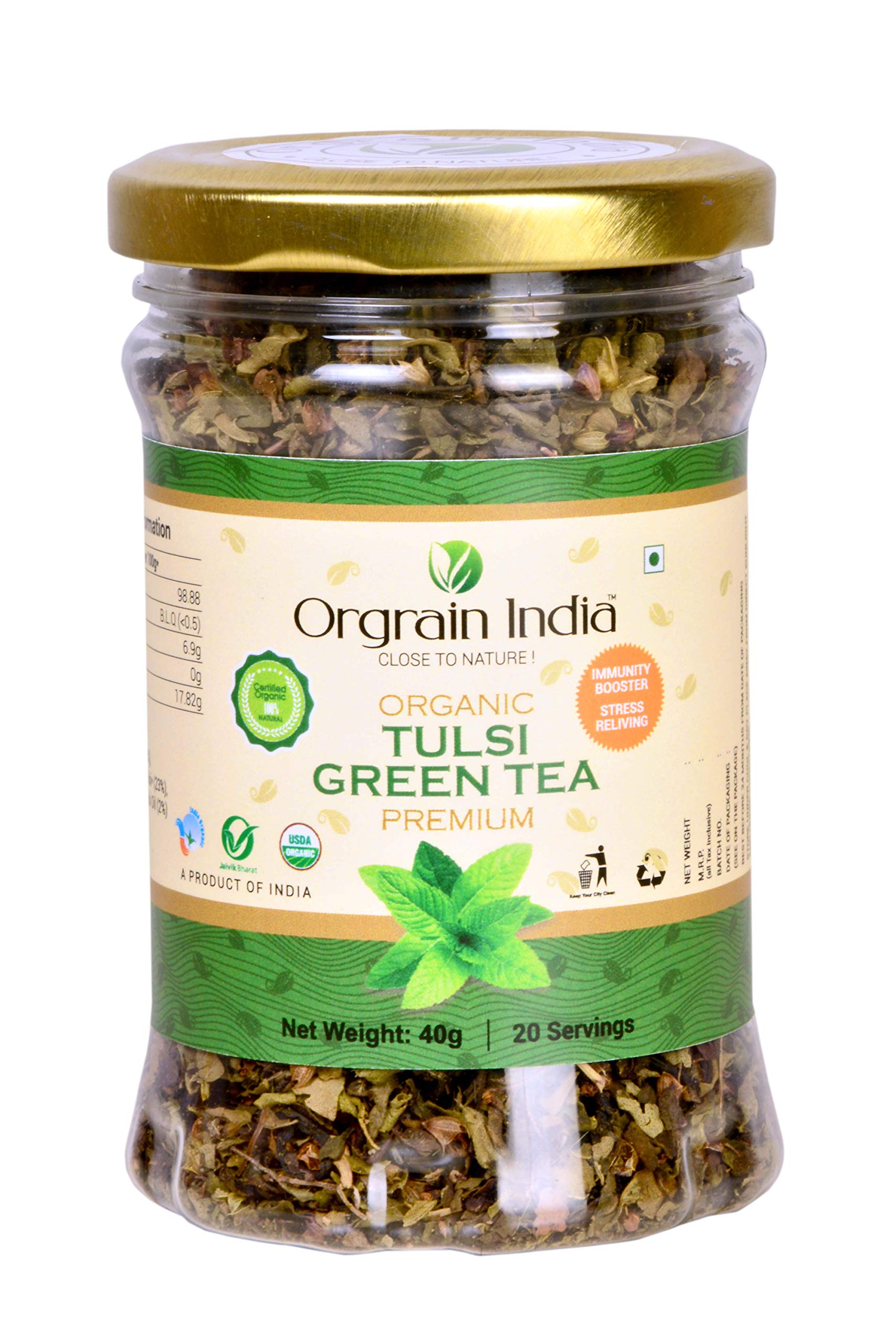 Orgrain India Certified Organic Tulsi Green Tea 40g | Stress Relieving & Energizing Immune Support Adaptogen Vegan Gluten-Free