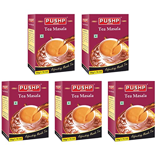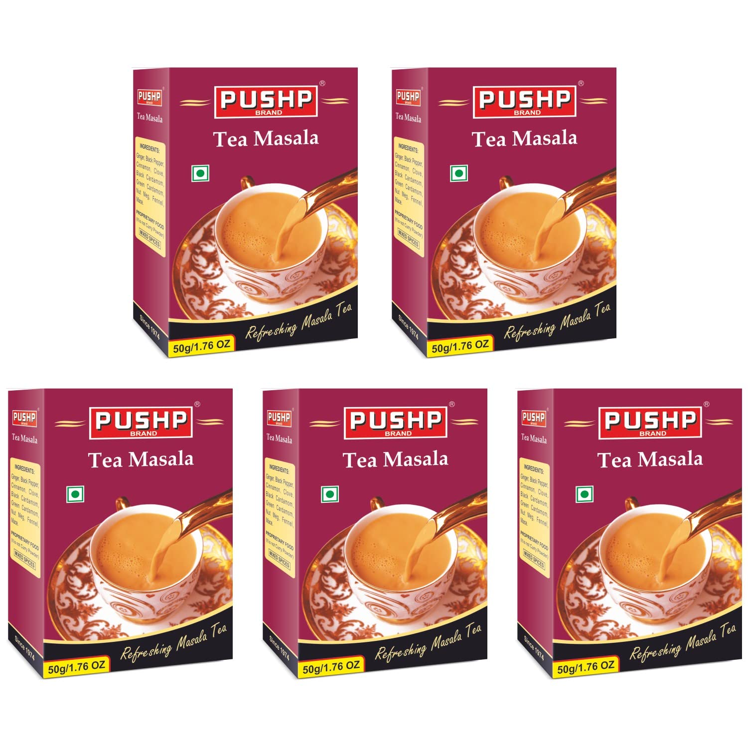 Pushp Brand Masala Aromatic Chai Tea Masala Powder With 100% Natural Ingredients 50 Gm (Pack Of 5)