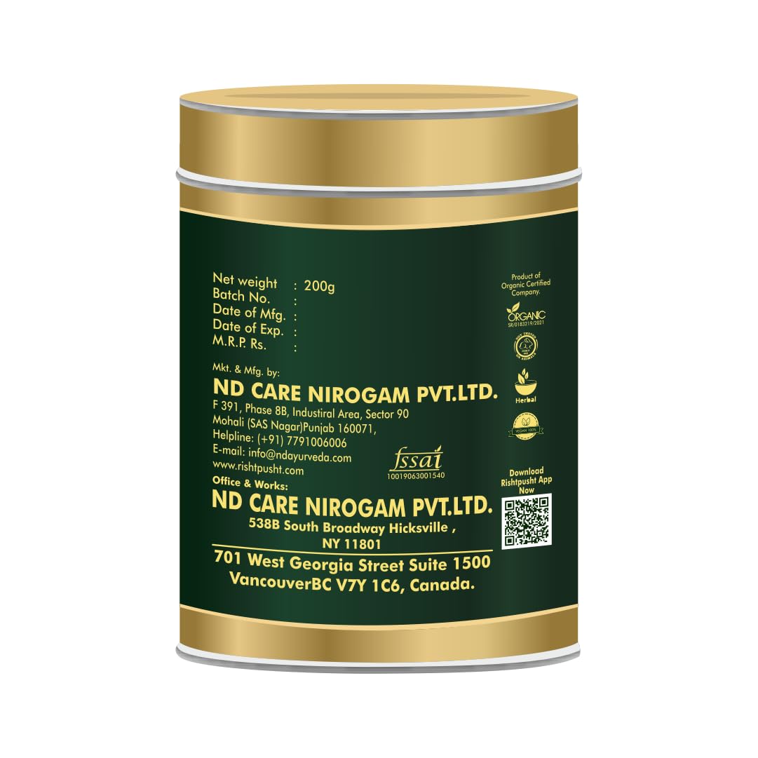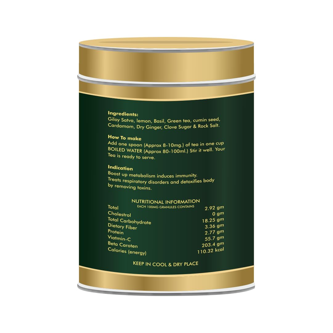 Introducing Rishtpusht Naturals Giloy Herbal Tea - the ultimate blend crafted to enhance your immunity naturally. Packed with the goodness of Giloy a revered herb in Ayurveda known for its immune-boosting properties this herbal tea is your perfect companion for staying healthy and strong.Each sip of Rishtpusht Naturals Giloy Herbal Tea brings you a rich infusion of handpicked Giloy leaves expertly blended to deliver a refreshing and revitalizing experience. Sourced from the finest natural ingredients our herbal tea is free from any artificial additives or preservatives ensuring you receive only the purest benefits of nature.With a convenient box containing 200 grams of herbal goodness Rishtpusht Naturals Giloy Herbal Tea provides you with an ample supply to enjoy daily. Whether you're starting your day on a healthy note or unwinding after a long day this herbal tea offers a soothing and invigorating experience for both body and mind.Key Features:Immunity Booster: Giloy is renowned for its immune-strengthening properties helping you stay protected against seasonal illnesses and infections.Natural Ingredients: Made from 100% natural ingredients our herbal tea is a wholesome and safe choice for your daily wellness routine.Refreshing Flavor: Enjoy the invigorating taste of Giloy infused herbal tea designed to refresh your senses and revitalize your body.Convenient Packaging: Packaged in a 200-gram box our herbal tea ensures you have an ample supply to support your wellness journey.Experience the power of nature with Rishtpusht Naturals Giloy Herbal Tea and embrace a healthier more vibrant lifestyle with every sip.