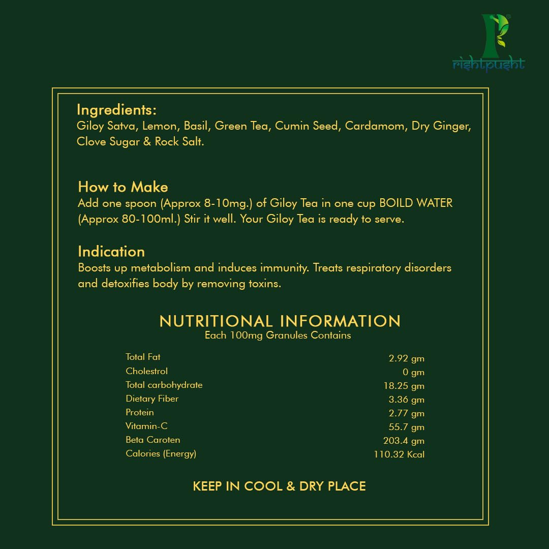 Rishtpusht Pure Ayurvedic Herbs Giloy Green Herbal Tea for Help Immunity Booster Made Giloy Tea The Indian chai with Natural Protein Vitamin C गिलोय चाय - Combo (Pack of 2 200gm on Each Pack)