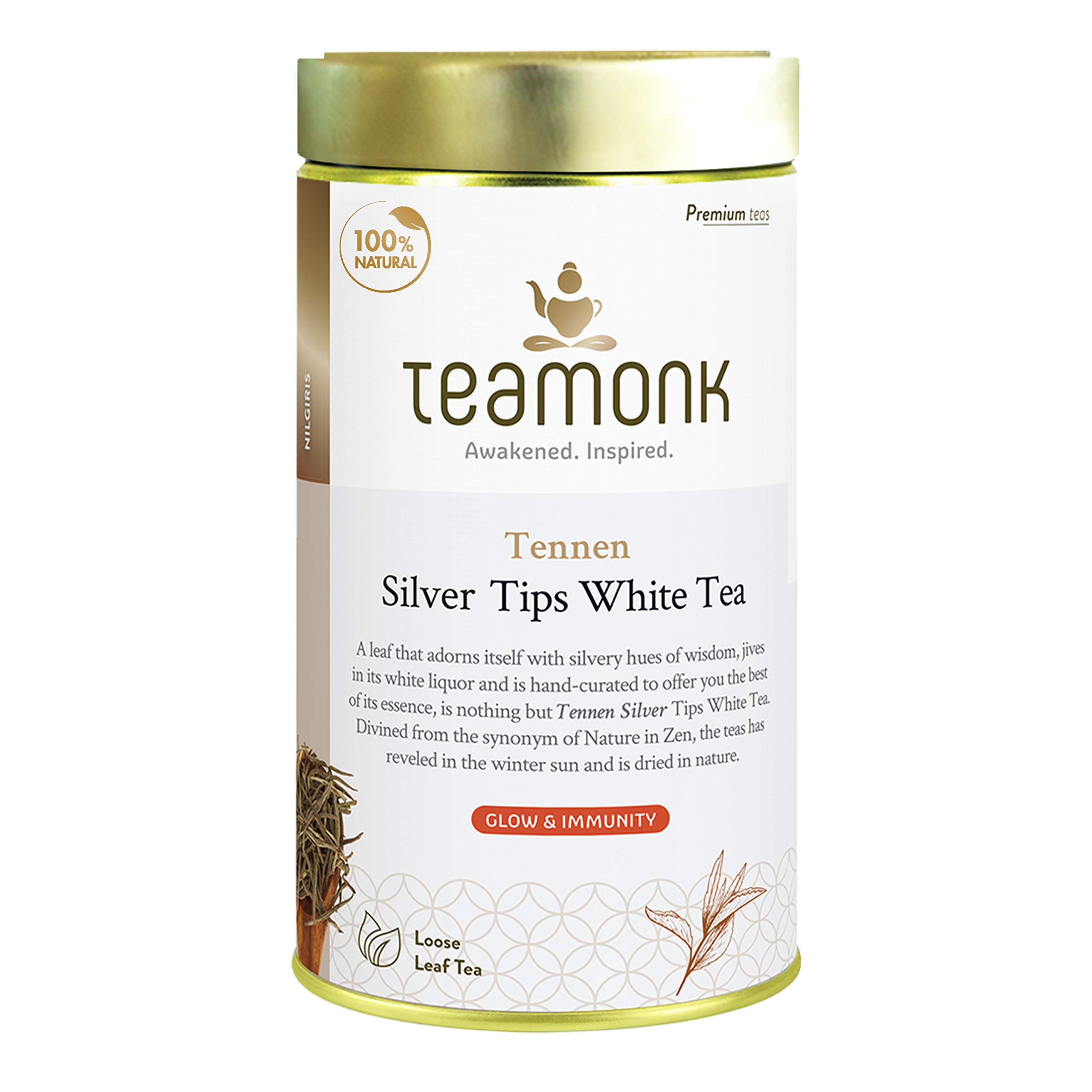 Teamonk Tennen Nilgiri Silver Needle White Tea Leaves Box - 75 gm Bag (Makes 37 Cup of Perfect White Tea). Tea Pack