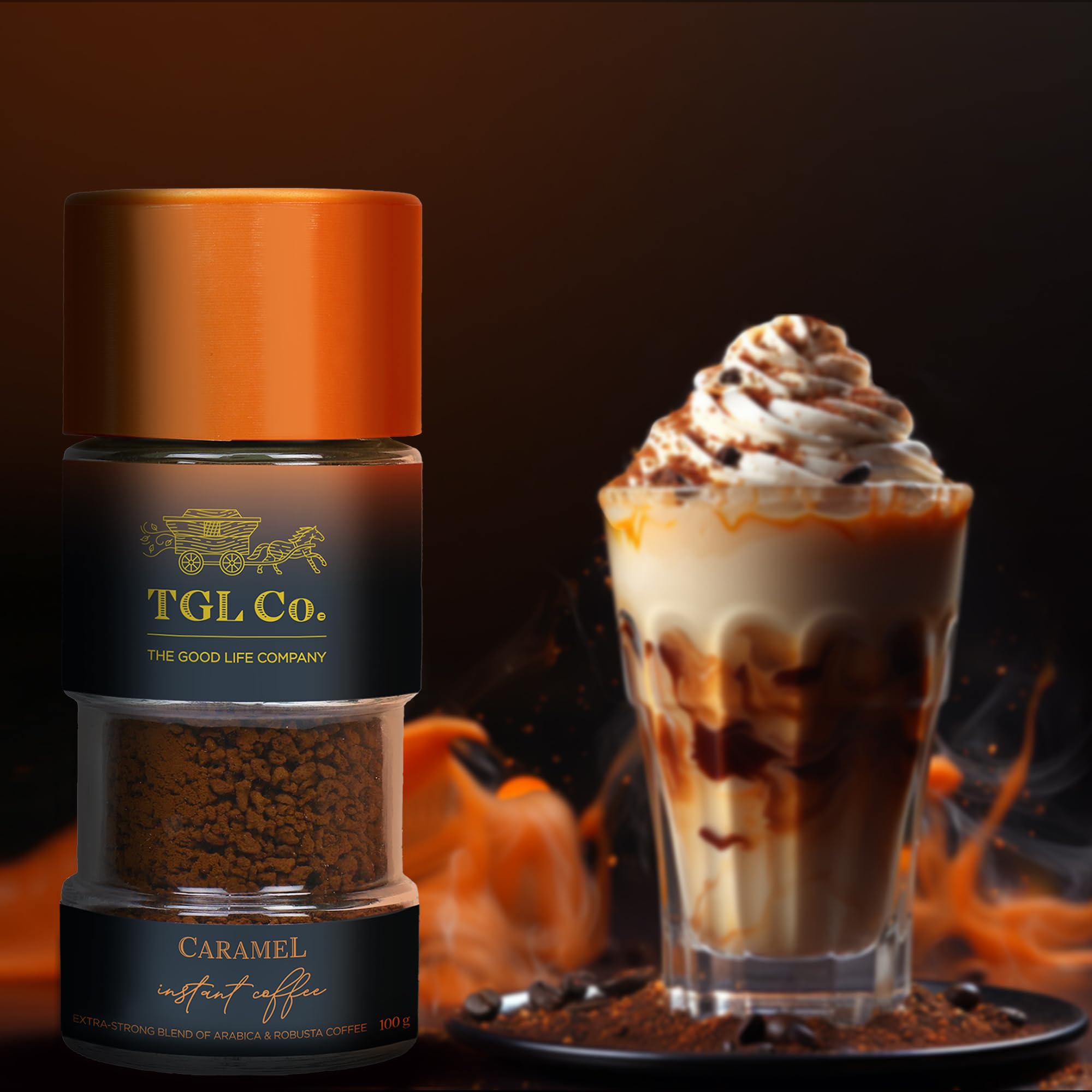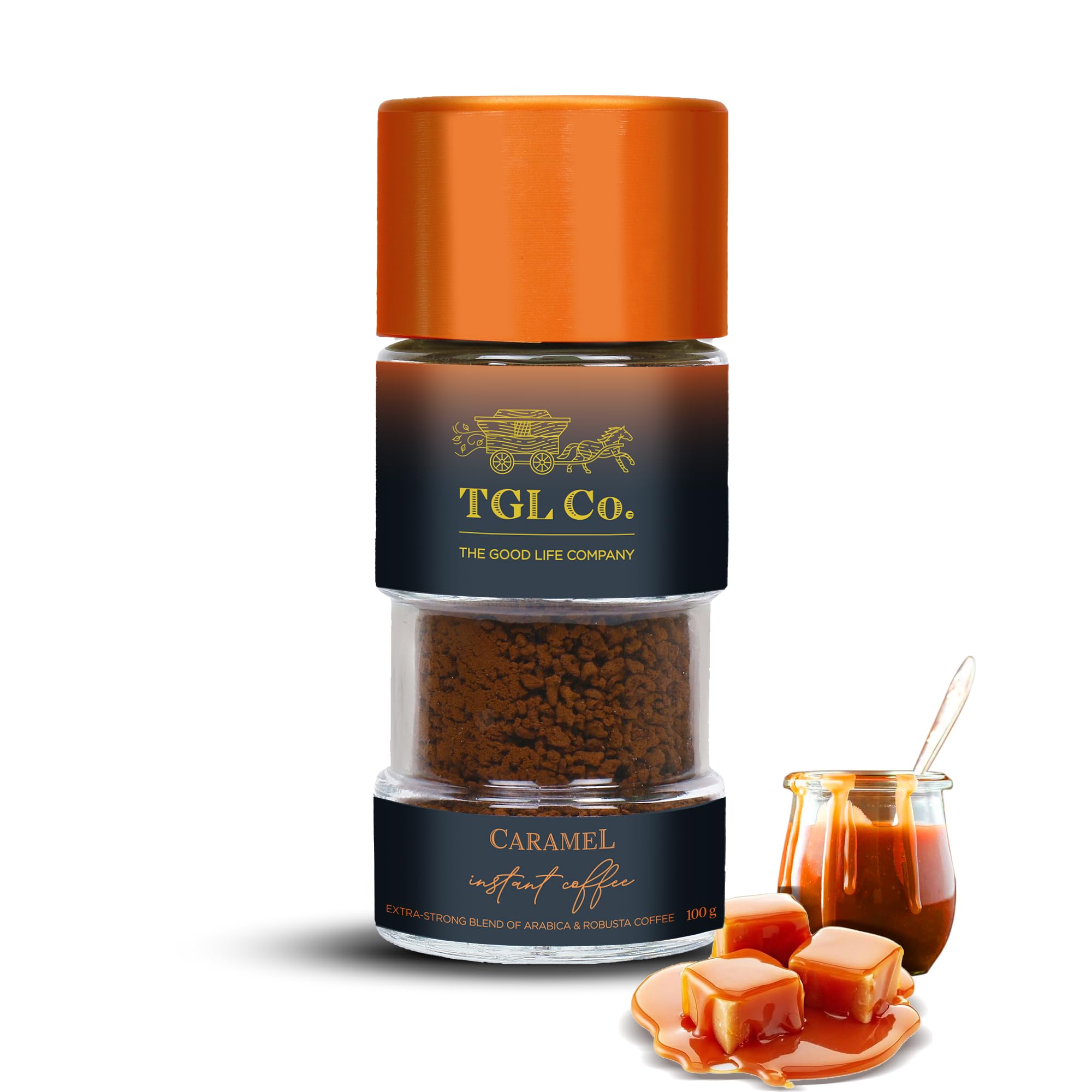 TGL Co. The Good Life Company Combo Of Flavoured Instant Coffee Hazelnut Coffee Vanilla Coffee & Caramel Coffee (100 Gm) Pack Of 3 Ground Bottle