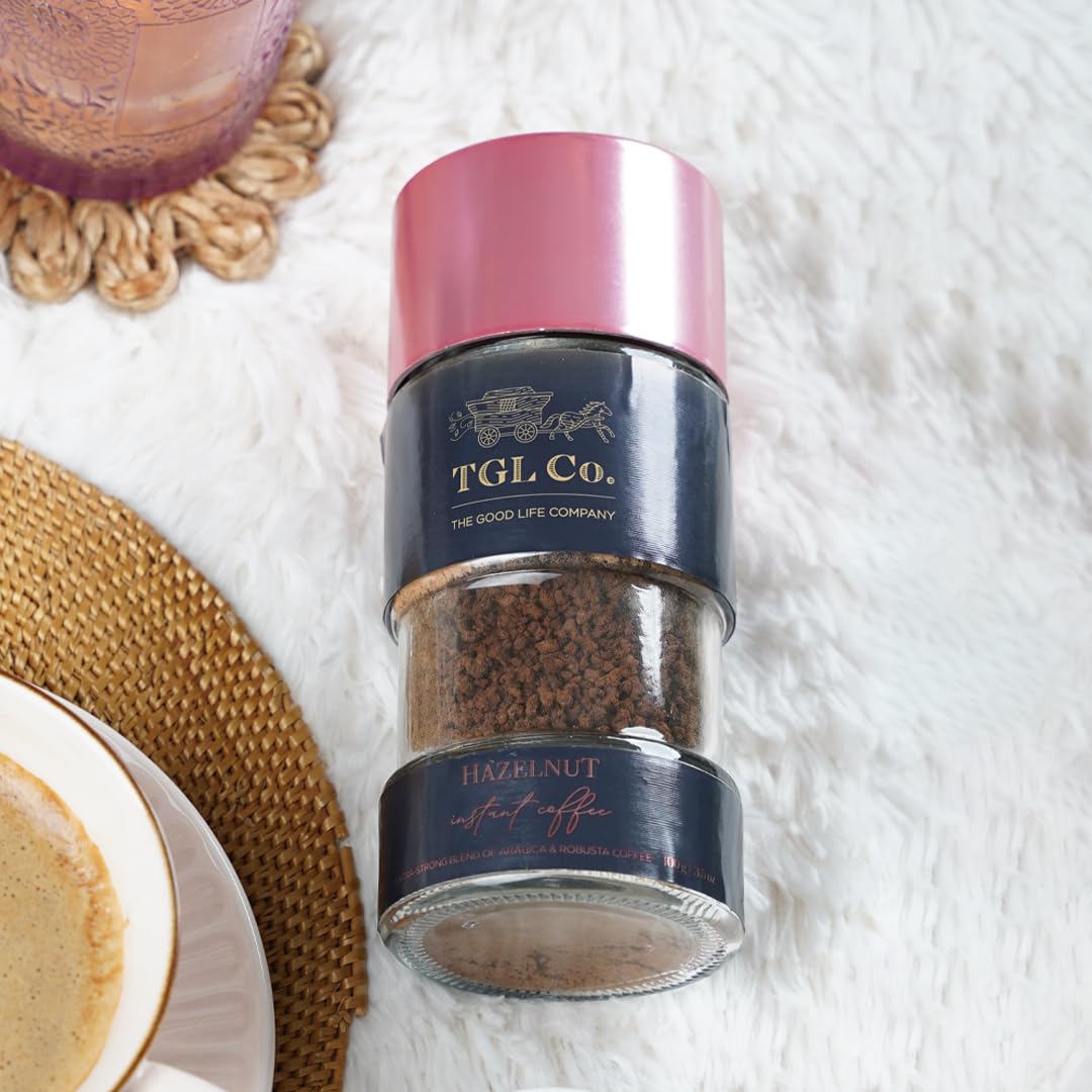 TGL Co. The Good Life Company Hazelnut Flavoured Instant Coffee Granule Glass Bottle(100 Gm)|Hot&Cold|ExpressoLatteCappuccino|Rich&Smooth Taste|Anti Oxidant|Boost Energy|No Artificial Flavour
