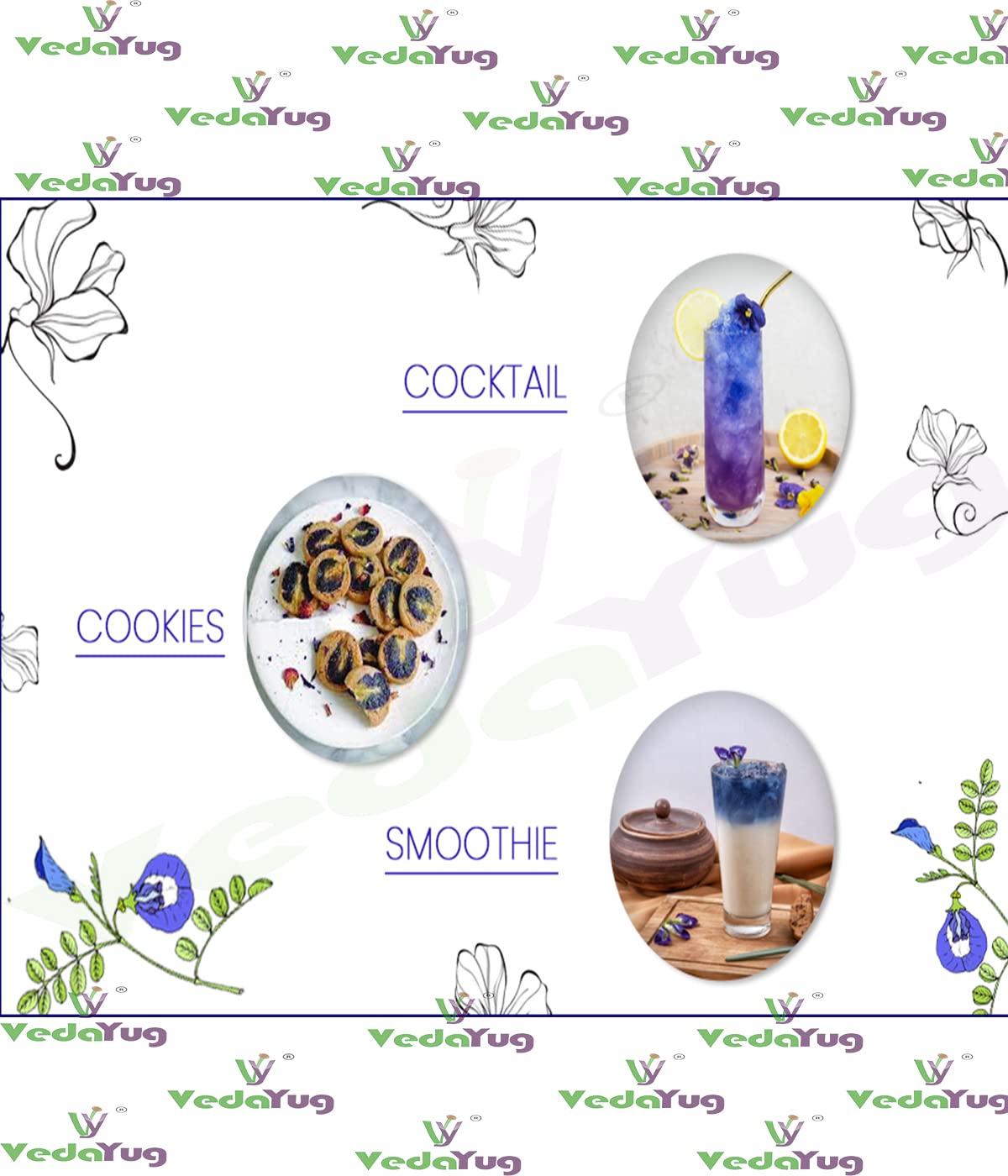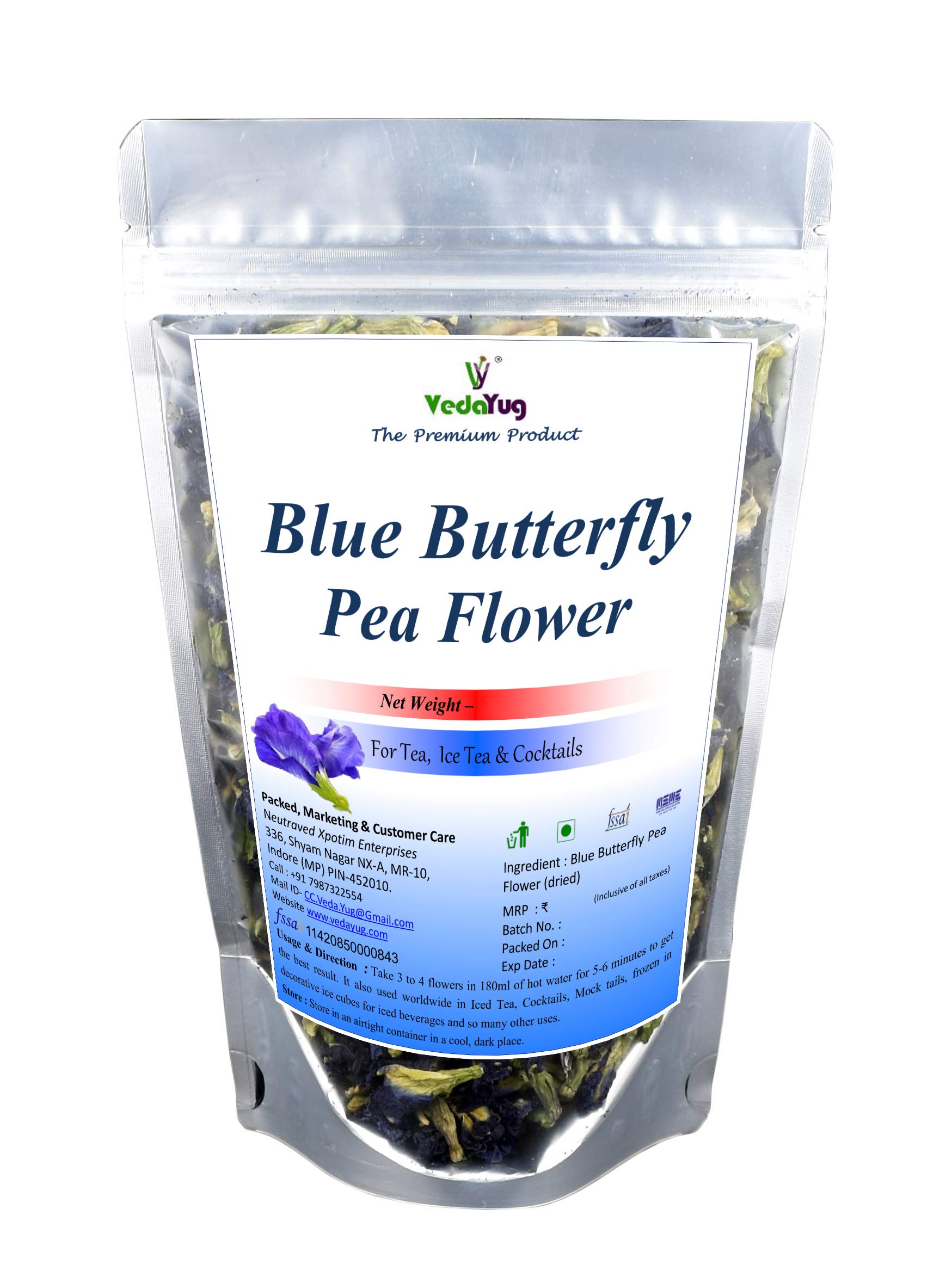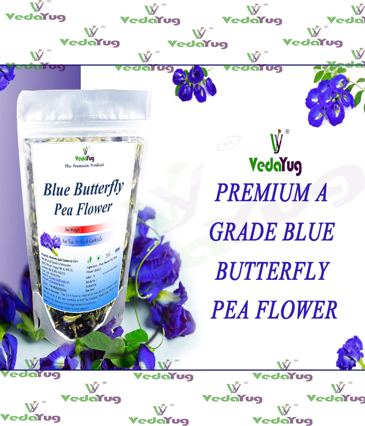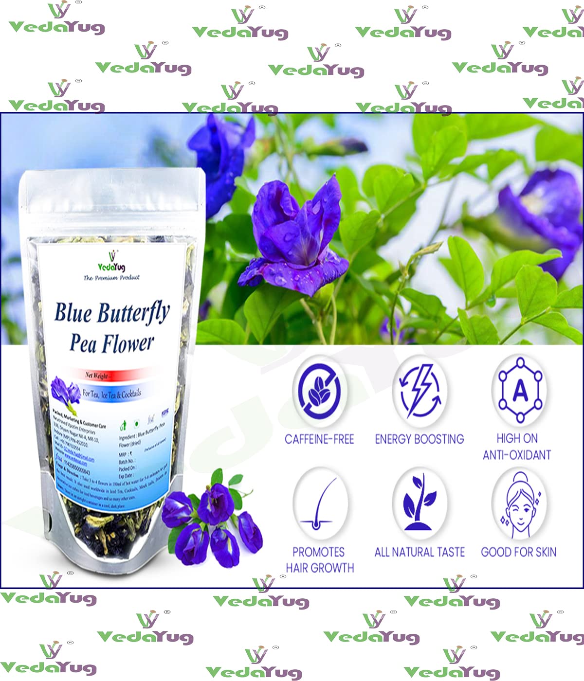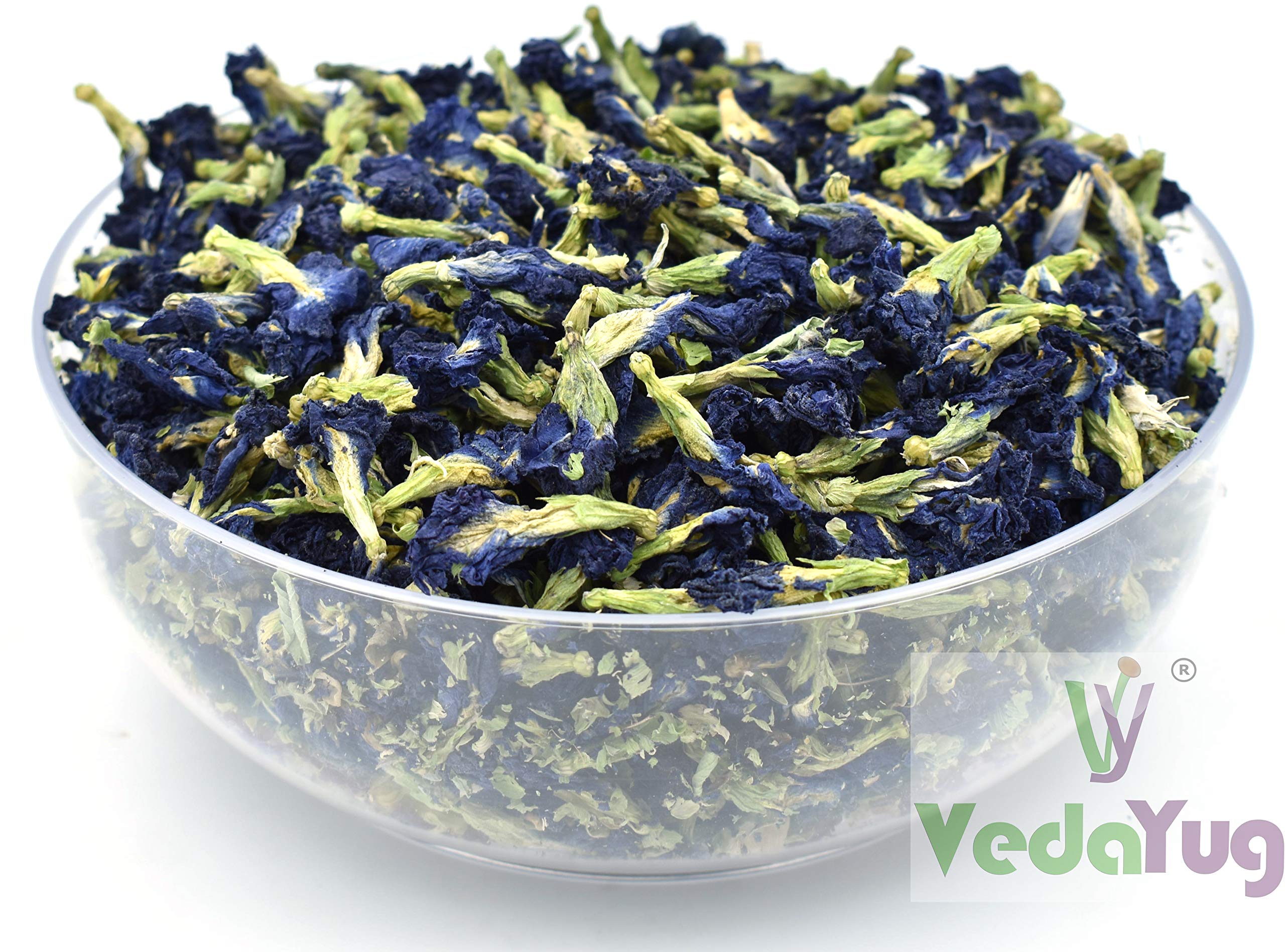 VY VedaYug Blue Butterfly Pea Flower 40g | Naturally Dried Whole Flowers | Herbal Tea Natural Food Colorant DIY Beauty & Crafts | Caffeine-Free | Resealable Pouch