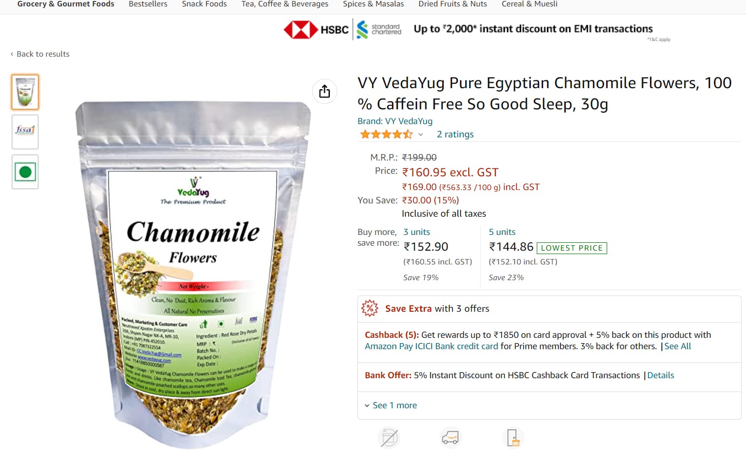 VY VedaYug Combo Herbal tea Chamomile Flower 30g Blue Butterfly 20g & Lavender 30g Herbal Tea Ingredient set (80g)