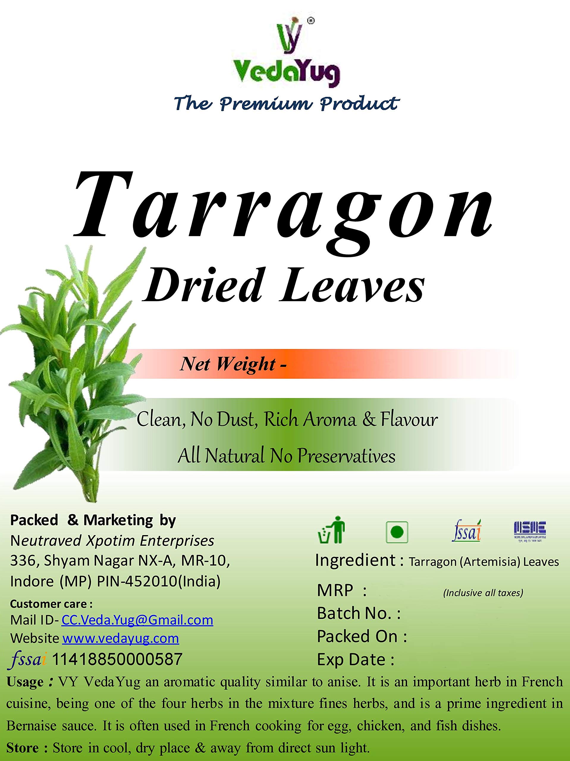 VY VedaYug Tarragon Leaves Mediterranean Culinary Herb for Citrus Tea/Sauce/Salads - 25g