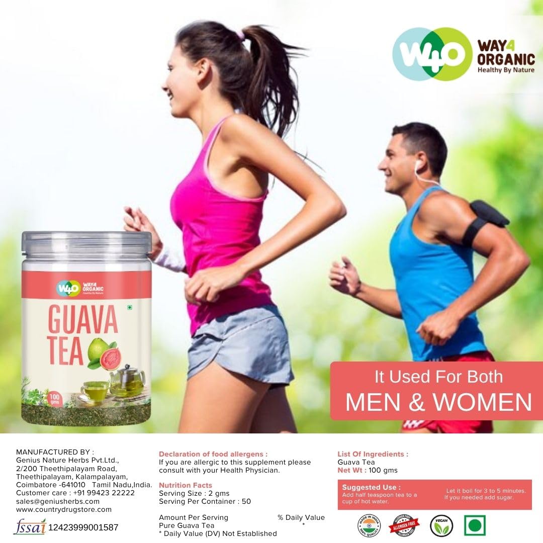 WAY 4 ORGANIC W4O Guava Leaf Tea/Psidium guajava Tea 100 g Canister Pack (Pack of 1)
