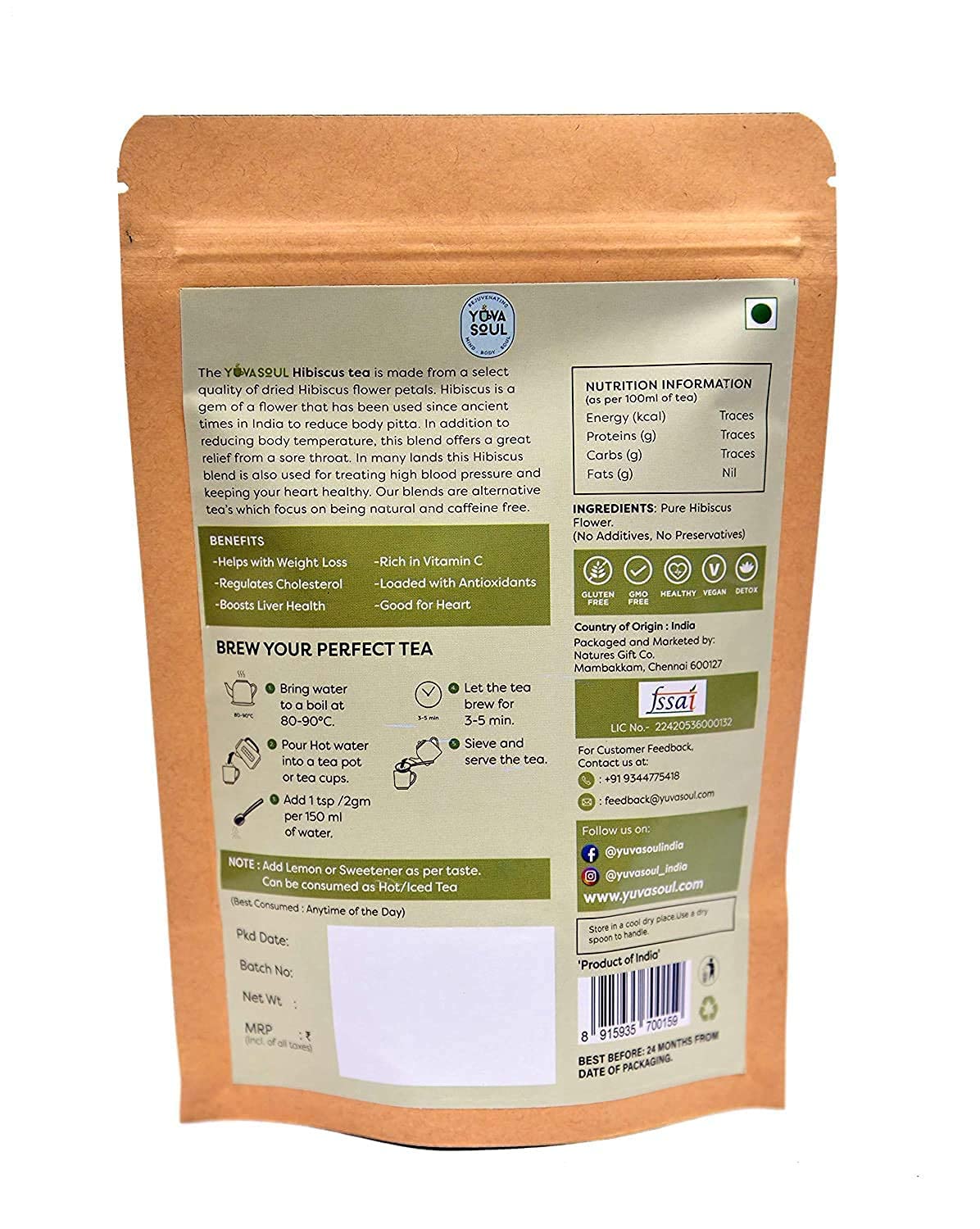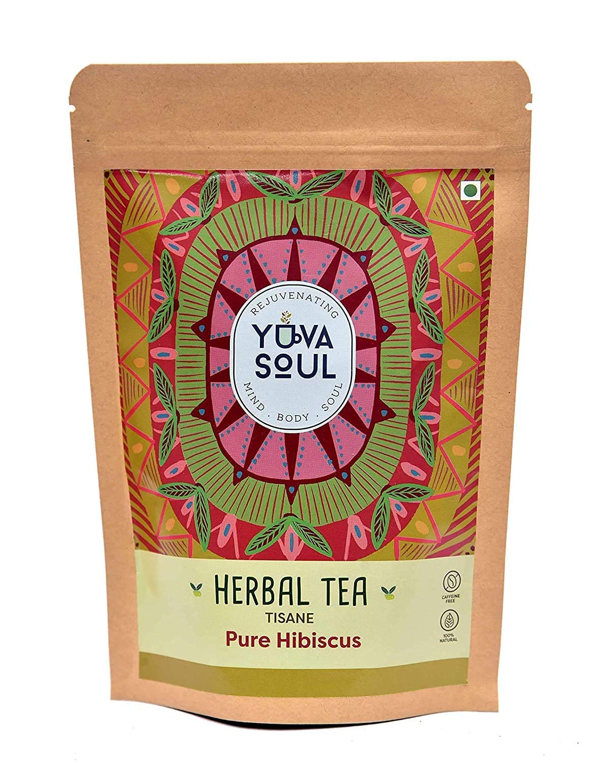 Made from select quality of dried Hibiscus flower petals the Yuva Soul Hibiscus tea is an ultimate health tonic. Hibiscus is a gem of a flower that has been used since ancient times in India to reduce body pitta. In addition to soothing a sore throat the hibiscus infused tea also helps reduce the body temperature. Since ancient times hibiscus tea has also been used to regulate blood pressure and improve heart health.