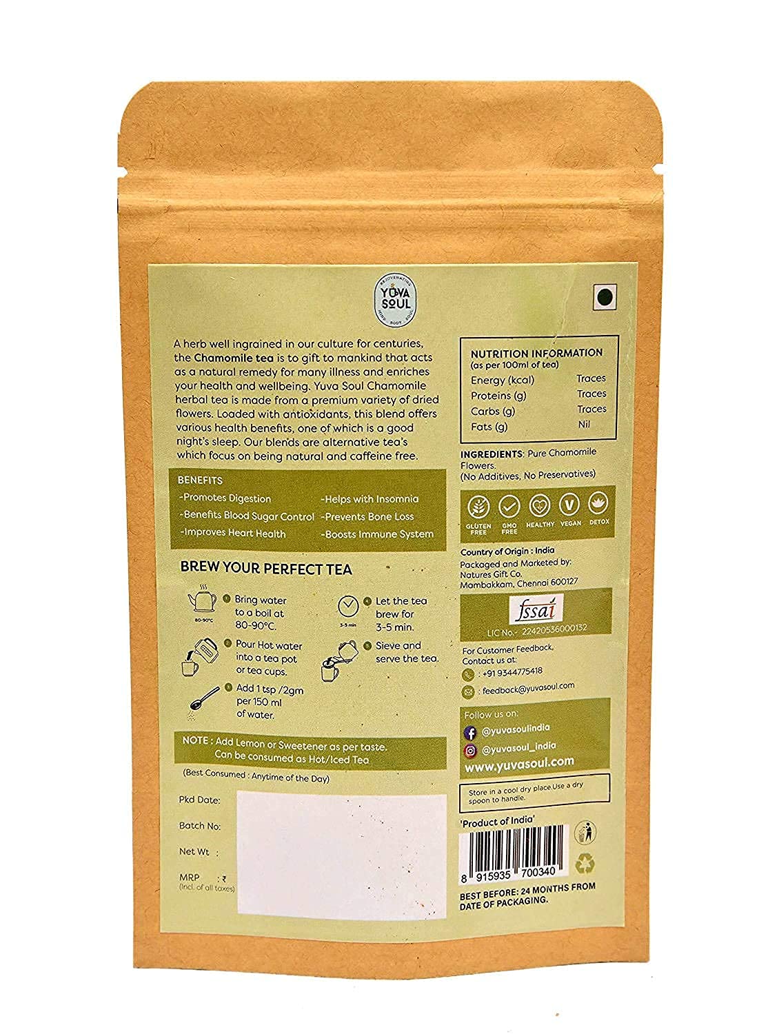 YUVA SOUL Natural Tulsi - Chamomile Tea Caffeine Free - 75 Grams