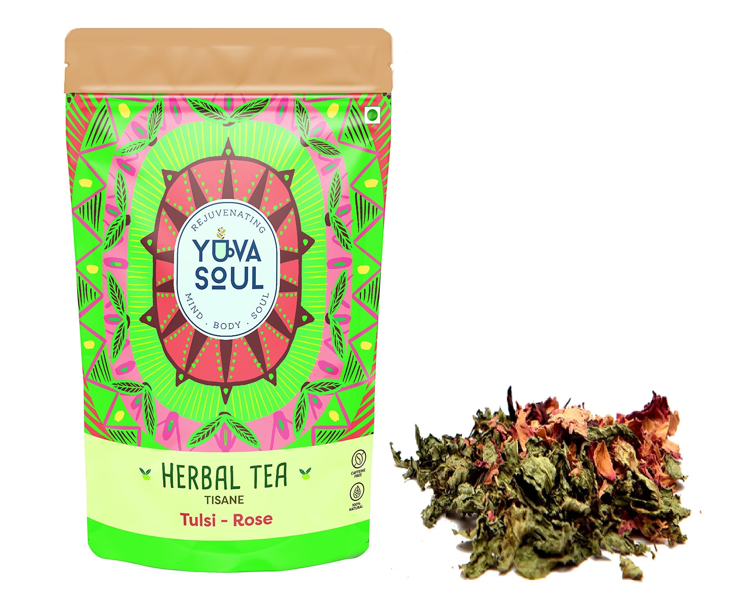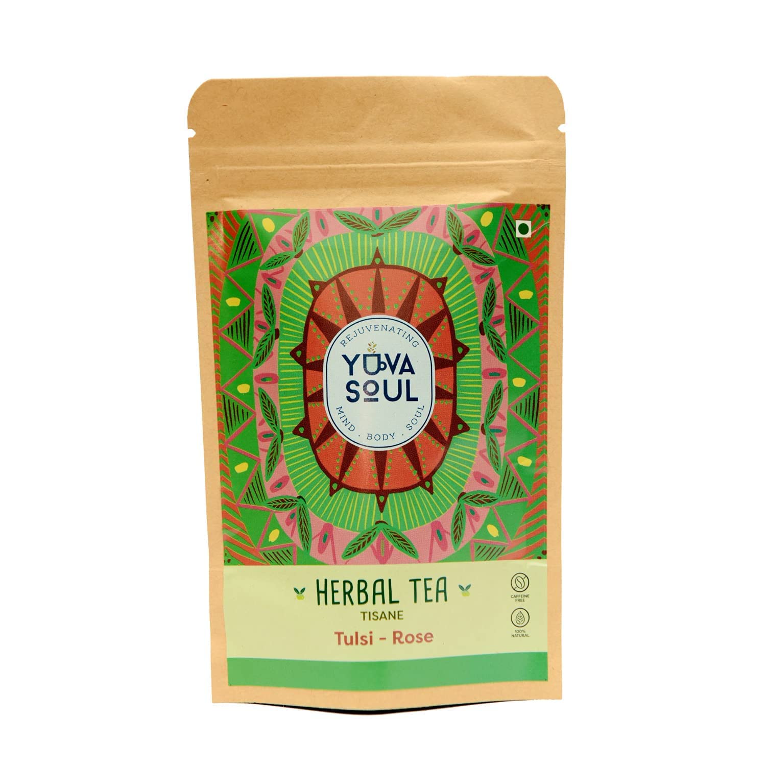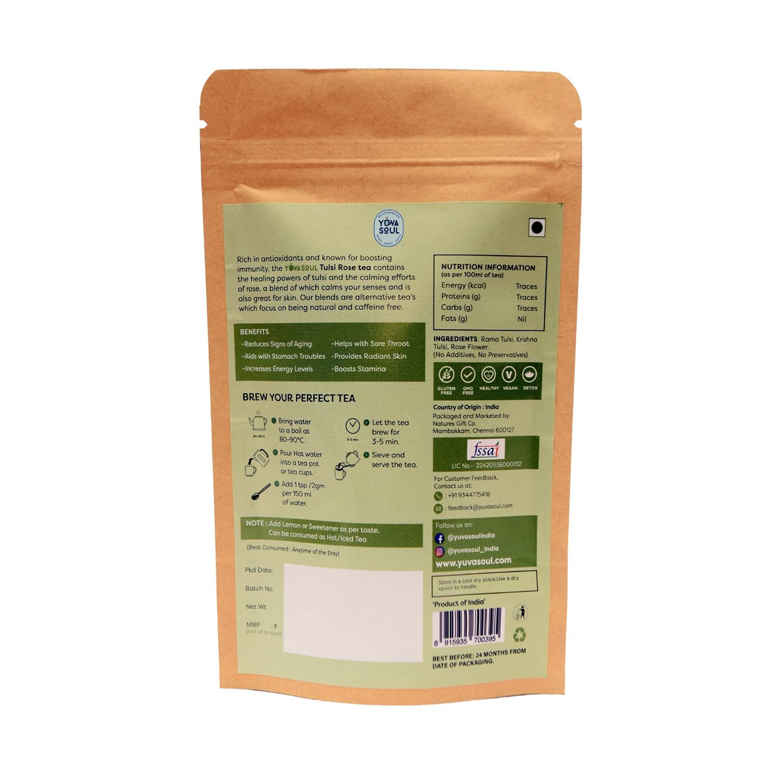YUVA SOUL Tulsi Tea Tulsi Green Tea Rose Tea Rose Tulsi tea For Stress Relief 75 Grams