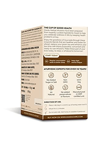 Zandu Ashwagandha Amla Ayurvedic Infusion, a Herbal Tea Enriched with 6 Ayurvedic Ingredients (25 Tea Bags)