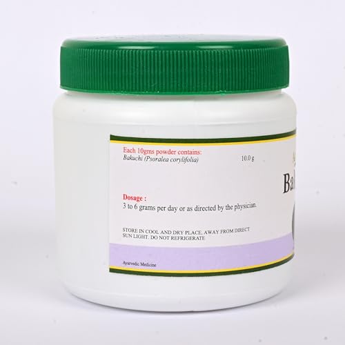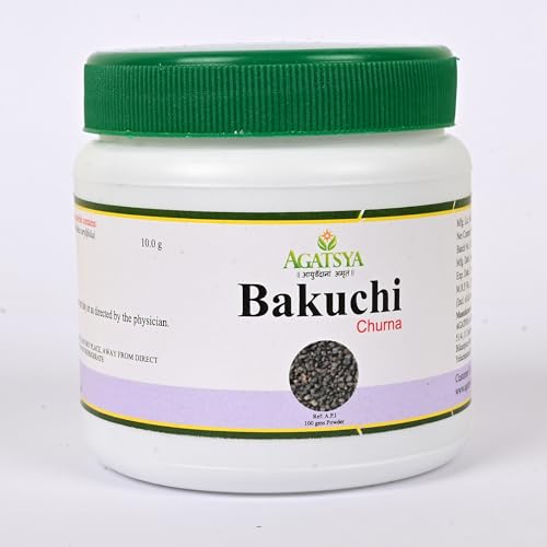 Bakuchi is an eminent herb extensively used in skin disorders. Also knows as Avalguja, the seeds have immense therapeutic benefits in treating Leucoderma.Botanical name: Psoralea corylifoliaFamily: FabaceaeBakuchi seeds are used to make the powder.Rasa: Katu, TiktaGuna: Laghu, RukshaVeerya: UshnaVipaka: KatuBalances Kapha and Vata doshas.Agatsya Bakuchi Churna uses:· A blood purifier· A remedy for wide range of skin diseases· Treats fever, Diabetes, worm infestations.