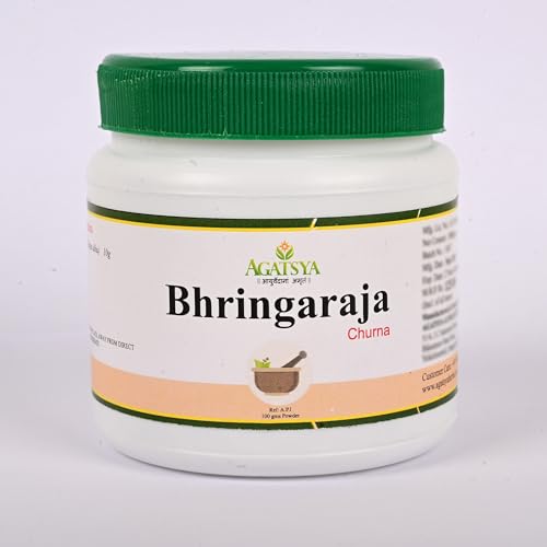 Bhringaraja is the most eminent hair tonic in Ayurveda. Also known as Kesaraja, Kesaranjana and Markava due to its enormous benefits for hair care. Ancient texts have deliniated its cosmetic as well as medicinal value.It is claimed to be the best Rasayana. Its hepatoprotective role is very well established.Botanical name: Eclipta albaFamily: AsteraceaeThe dried whole plant is used to make Bhringaraja powder.Rasa: Katu, TiktaGuna: Ruksha, LaghuVeerya: UshnaVipaka: KatuBalances Kapha and Vata dosha.Agatsya Bhringaja Churna benefits:· Keshya good for hair, enhances hair quality and growth· Useful in eye disorders· Good for teeth, skin· Relieves cough, cold, respiratory infections· Anti inflammatory· Detoxifies blood· Treats conditions of Anaemia, Fever , Indigestion.