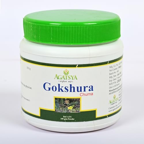 Gokshura is a rejuvenating and revitalizing tonic that is cooling and nourishing.It is also known as Trikantaka due to its spine structure. It acts as an exceptional diuretic, making it extremely beneficial for improving kidney functions and treating a number of genitourinary problems. It is one of the herbs which is diuretic as well as anti inflammatory. In recent years it has been emerging as a popular dietary supplement.Botanical name: Tribulus terrestrisFamily: ZygophyllaceaeThe dried fruit is used to make Gokshura Churna.Rasa: MadhuraGuna: Guru, SnigdhaVeerya: SheetaVipaka: MadhuraPacifies Tridosha.Agatsya Gokshura Churna benefits:· Extremely nourishing· Well known for its diuretic activity, detoxifies bladder, relieves difficulty in urination· Improves digestion, relieves abdominal colic· Useful in cardiac disorders· Treats respiratory conditions· Enhances hair growth· Useful in Diabetes, Urinary tract diseases, Haemorrhoids· An Anti ageing herb· An aphrodisiac· It promotes male sexual and reproductive health along with proper function of the Prostate gland. It is useful in conditions such as general Debility, Haemorrhoids, Diabetes and Cardiac diseases.