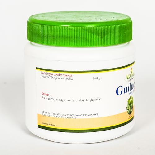 The health promoting powers of Guduchi were so respected by the Acharyas of Ayurveda that they also named it as Amrita i.e the divine nectar. Owing to its immense benefits Acharya Charaka has quoted it under Agrya Dravyas(principal drugs). He also identified it as one of the best Medhya Rasayana (brain tonic).As a rejuvenator, Guduchi strengthens the tissues, boosts immunity and promotes vitality while calming the mind and supporting proper function of the nervous system. It is also traditionally used to promote longevity and to support healthy reproduction.Botanical name: Tinospora cordifolia Wall. ex SeringeFamily: MenispermaceaePart used: StemRasa: Kashaya, TiktaGuna: LaghuVeerya: UshnaVipaka:MadhuraBalances Tridoshas.Agatsya Guduchi Churna benefits:· Promotes digestion· Relieves Constipation· Raktapitta ( bleeding disorders)· A Rasayana (Rejuvenative)· Treats a wide range of fevers.· Useful in diarrhoea,vomiting ,piles.· Balya-strengthens the body· Relieves Ama- a condition associated with indigestion etc· Treats Diabetes, Urinary disorders, Cough,Asthma, Anaemia, Jaundice, liver disorders, Gout, Arthritis; Excessive thirst, burning sensation, skin disorders.· Improves cardiac health and vision.· An Aphrodisiac