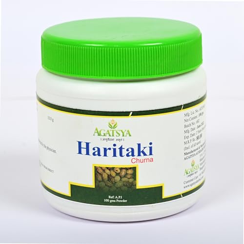 Haritaki literally means that which effectively removes the diseases and that which makes the body shine.It is considered to be one of the best herb for balancing Vata dosha. It acts as a bowel cleanser and supports healthy digestion. It streghtens the tissues, nourishes and supports the proper functioning of colon, lungs, liver and spleen. It is one of the ingredients of Triphala. Botanical name: Terminalia chebula Retz. Family: Combretaceae The fruit pericarp is used to make Haritaki churna. Rasa: Pancharasa except Lavana rasa, predominantly Kashaya rasa Guna: Laghu, Ruksha Veerya: Ushna Vipaka: Madhura Balance all the three doshas- Vata,Pitta and Kapha dosha. Agatsya Haritaki Churna benefits: · Medhya ie a brain tonic,improves intelligence and memory · Improves skin complexion · Rasayana- Anti aging; improves life expectancy · Natural detoxifier · Promotes physical strength · Relieves inflammation · Improves digestive strength · Helps in normalizing bowel movements · Supports eye health.