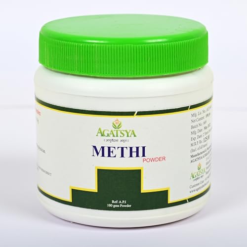 Methi or Fenugreek is a well known culinary spice works as a flavoring agent and addresses a variety of health concerns. It is a rich source of potent nutrients and dietary fibres.Botanical name: Trigonella foenumFamily: FabaceaeThe dried seed is used to make powder.Rasa: Katu, TiktaGuna: Laghu, SnigdhaVeerya: SheetaVipaka: KatuBalances Kapha and Vata dosha.Agatsya Methi Churna benefits:· An excellent agent to improve appetite, promotes healthy digestion and bowel movement· Relieves various respiratory disorders such as cough, Asthma, congestion· Detoxifies blood and treats Anaemia· Good for hair and skin· Promotes healthy lactation in nursing mothers· Controls blood sugar levels, blood pressure· Maintains healthy lipid metabolism· Exhibits liver protection properties· Treats various neurological disorders