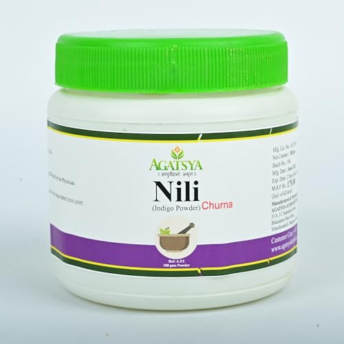 Nili also known as Neelini , popularly called as Indigo imparts excellent color to hair and promoter of hair growth. In Ayurveda it is considered as a renowned Keshya that is the herb which is a complete hair tonic.Botanical name: Indigofera tinctorea Linn.Family: FabaceaeThe whole plant are used to make Nili Churna.Rasa: TiktaGuna: Laghu, RukshaVeerya: UshnaVipaka: KatuBalances the Kapha and Vata dosha.Agatsya Nili Churna benefits:· Improves hair strength, promotes hair growth,"· Treats premature graying and baldness· Anti toxic· Utilized in purgation treatment· Indicated in dizziness· Diseases of spleen, enlargement of abdomen.· Joint disorders.