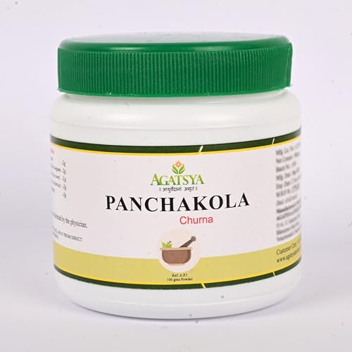 Agatsya Panchakola Churna is a polyherbal formulation prepared by mixture of five herbs in equal quantity. It is an excellent appetizer and relieves indigestion and flatulence. It also has antipyretic, analgesic and anti-inflammatory action. It is useful in conditions such as loss of taste, distension of abdomen, colicky pain, Spleenomegaly, Ascites due to Kapha dosha.Ingredients:· Pippali· Pippalimula· Chavya· Chitraka· Nagara