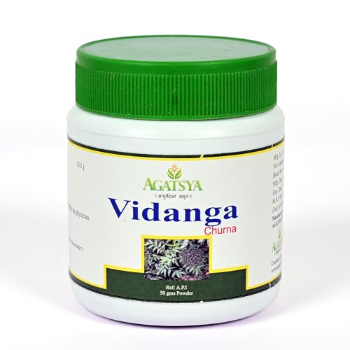 Acharya Charaka has delineated Vidanga as the best among the Krimighna dravya ie herbs that destructs the worms. It also acts as an Anti oxidant , Blood purifier and Rejuvenator.It is called as False black pepper as its external appearance mimics pepper.Botanical name: Embelia ribes Burm. F.Family: MyrsinaceaePart used: FruitRasa: Katu,KashayaGuna: Laghu, Ruksha, TiksnaVeerya: UshnaVipaka: KatuBalances Kapha and Vata doshas.Agatsya Vidanga Churna benefits:· Is the best herb to treat worm infestation ; bacterial,fungal infestation· Treats impaired digestion· Useful in skin disorders· Useful in the management of Diabetes, Urinary disorders· Improves appetite,relieves abdominal pain and bloating,distension· Relieves Constipation.