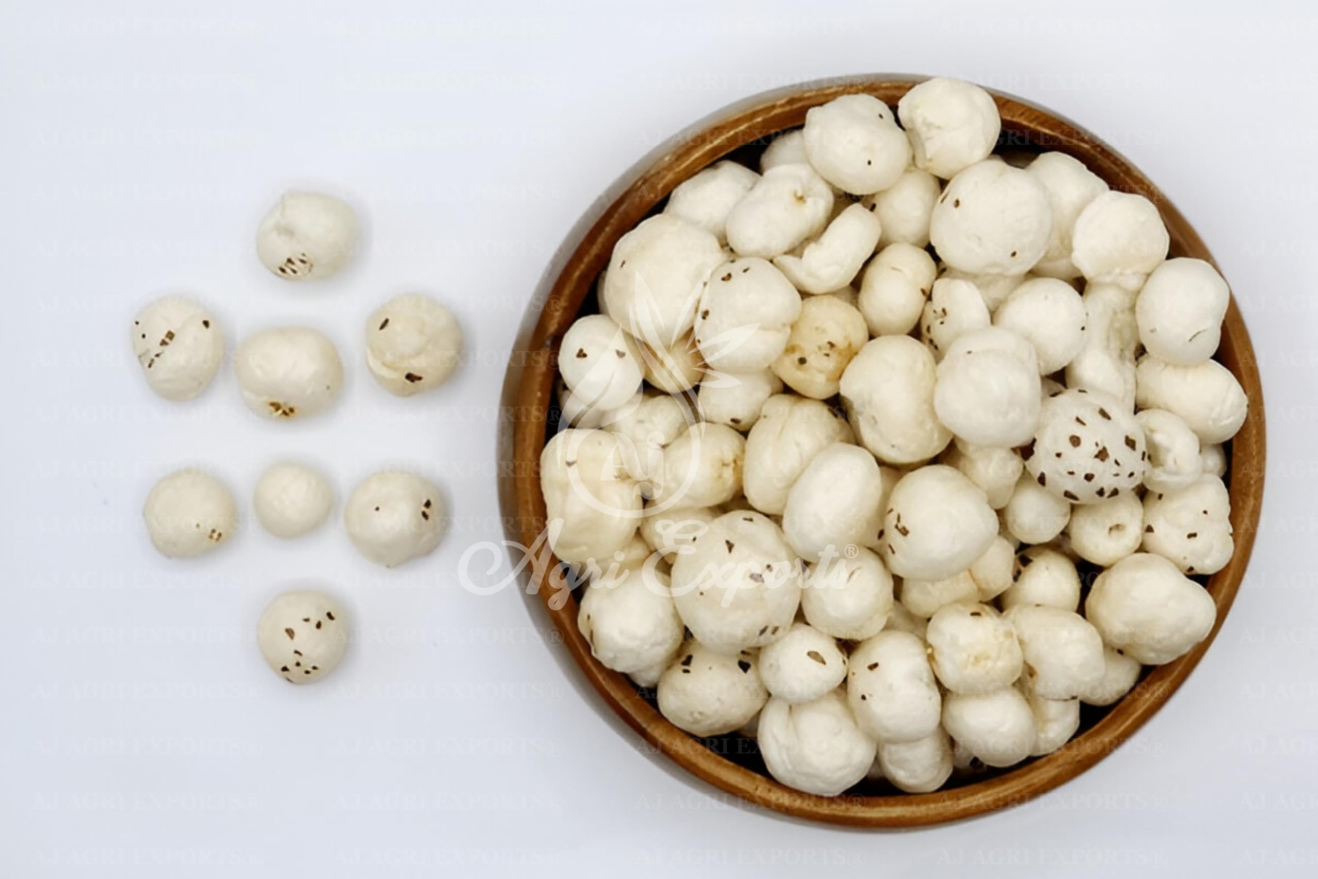 • Light crispy and airy fox nuts with a delicate texture perfect for roasting seasoning and enjoying as a crunchy snack.