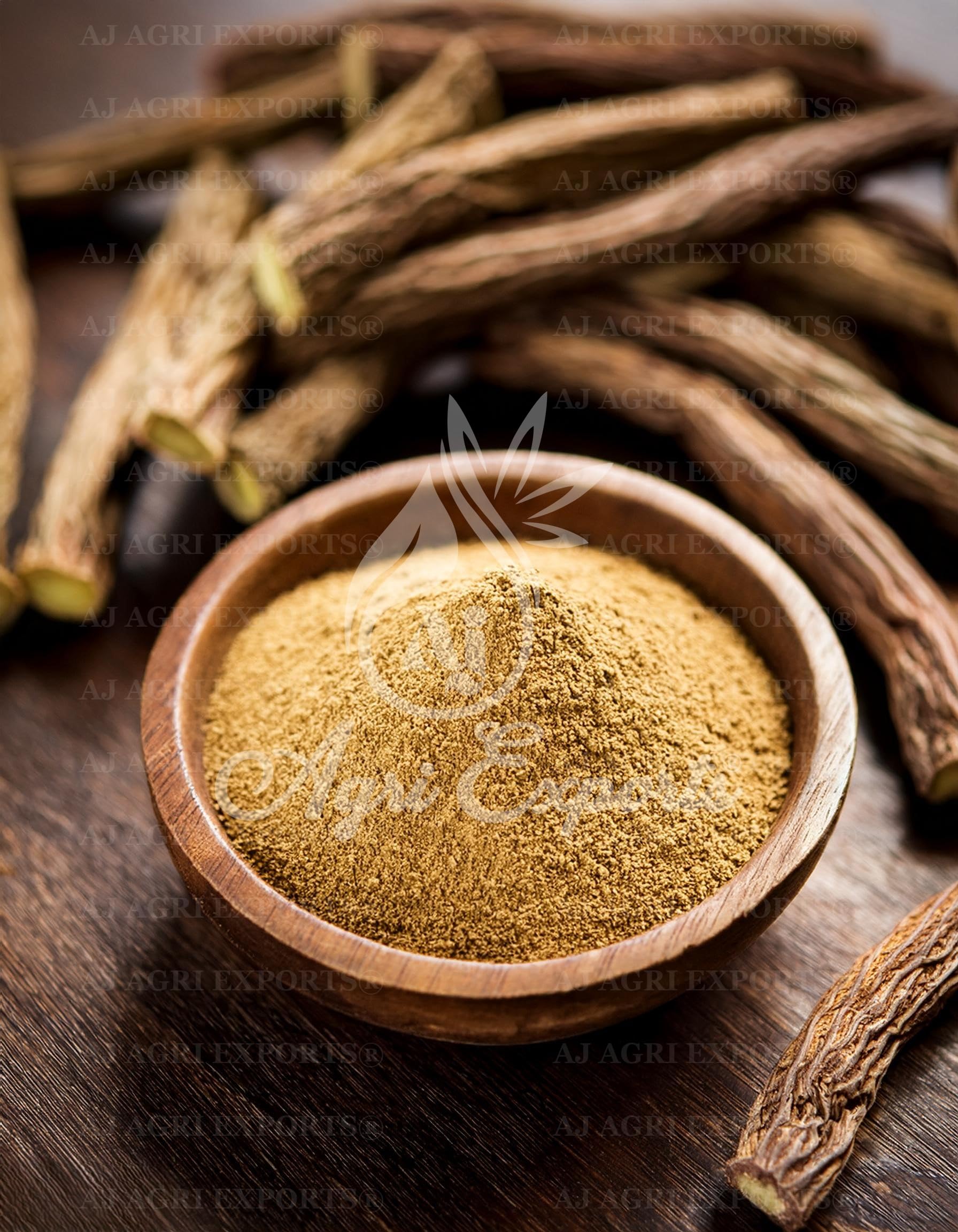 AJ AGRI EXPORTS Liquorice Mulethi Root Powder also known as Yashtimadhu Powder is a versatile natural ingredient with numerous benefits for health skin and hair care. This edible powder is derived from the Glycyrrhiza glabra plant and is free from preservatives. Mulethi Powder rich in natural pigmentation can be used as a face pack for glowing skin. It nourishes hair leaving it soft and lustrous. Incorporate this multipurpose Atimadhuram Podi/Athimadhura Hittu into your beauty regimen for a natural glow. Suitable for all skin types this licorice powder is a must-have for holistic well-being. Explore its goodness today!